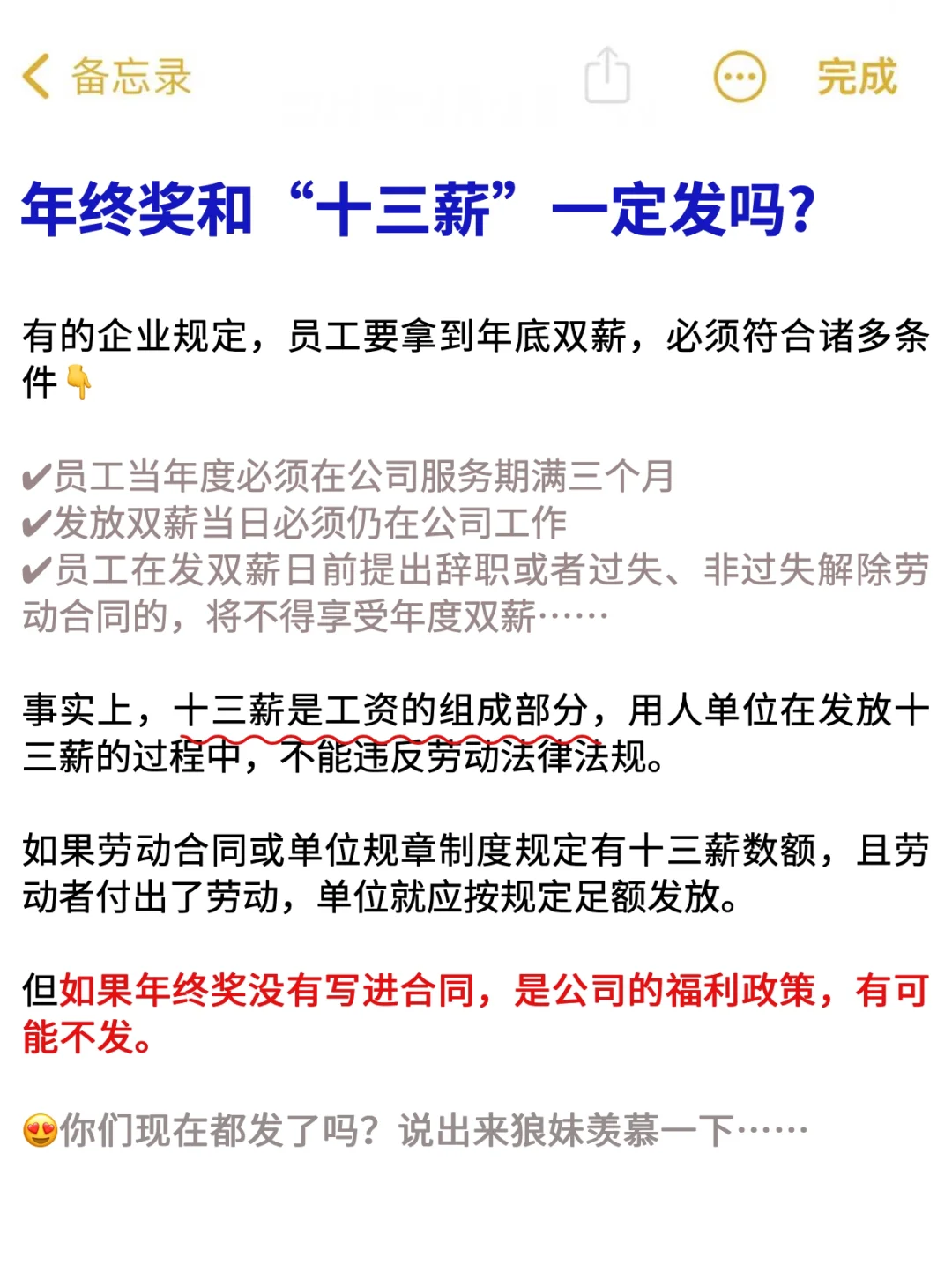 [色色R]要看你的合同满不满足13薪条件,如果符合合同,也可以拿的。年终奖就要看各个公司自己的政策👀