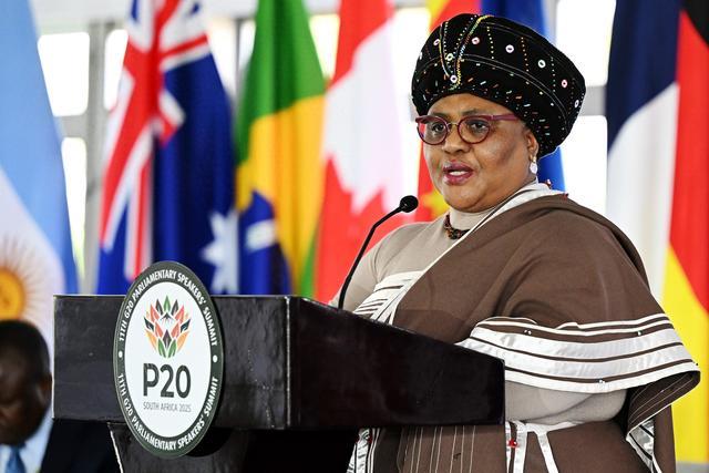 10月1日,在南非西开普省克莱因蒙德,南非国民议会议长托科·迪迪扎在开幕式上致辞。