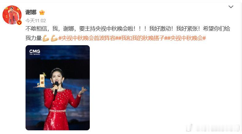 谢娜[超话]谢娜不敢相信我要主持央视中秋晚会真的被娜姐打动了!收到央视邀请时说