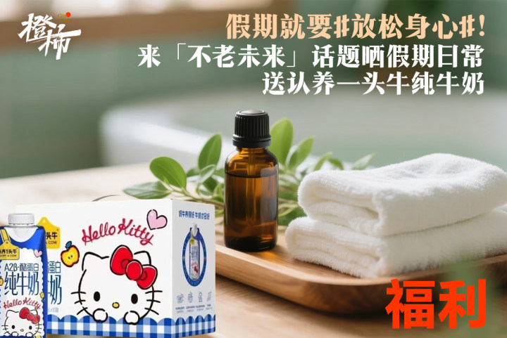 假期就要#放松身心#!来「不老未来」话题晒假期日常,送认养一头牛纯牛奶