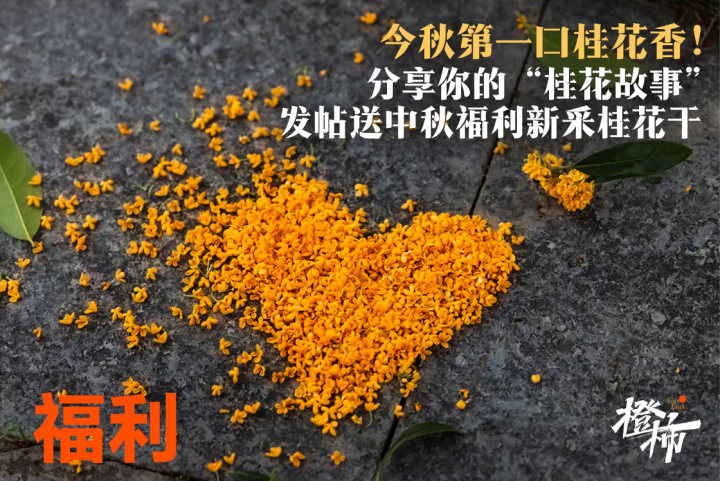 活动参与方式:来橙友圈#杭州吃什么#话题发帖,文字带标签#秋天的第一口桂花香#,分享你赏过的桂花、吃到过的桂花点心或属于你的桂花故事、中秋记忆等等。