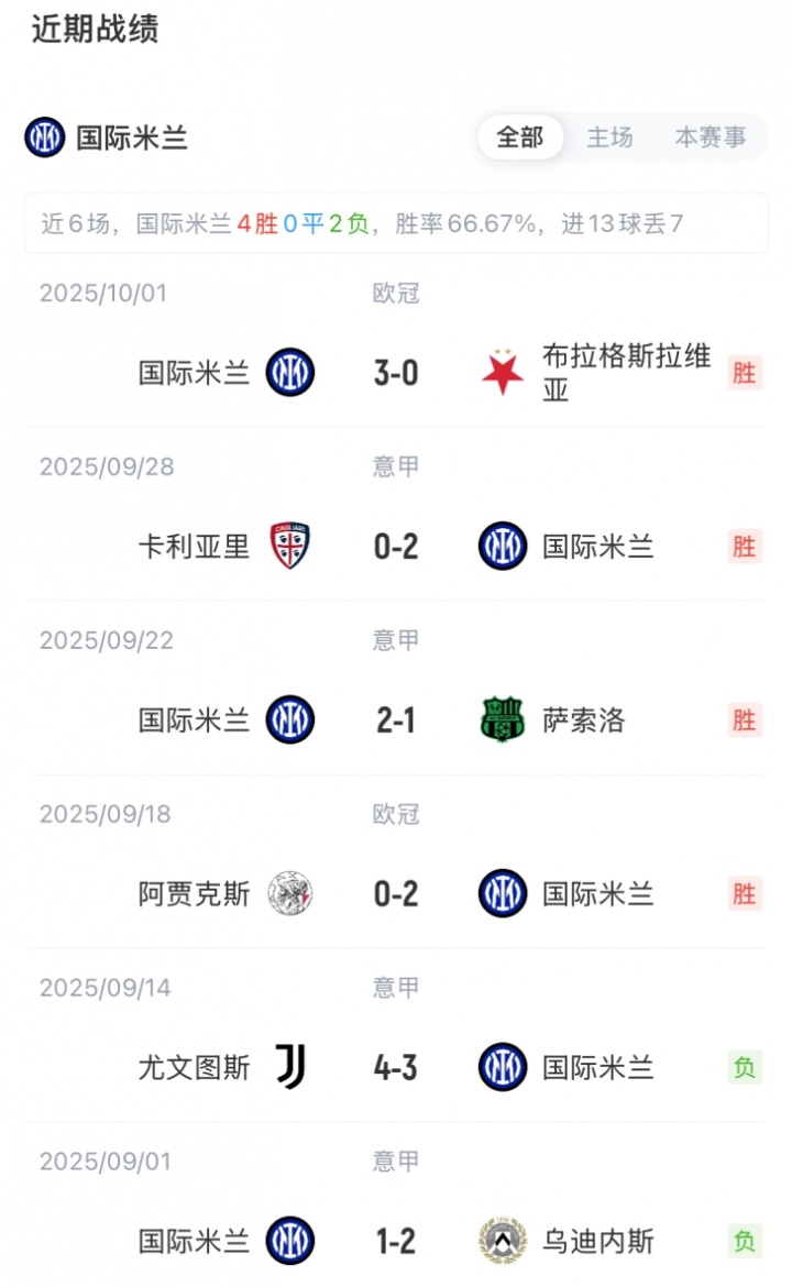 直播吧10月4日讯 意甲第6轮,国米主场迎战克雷莫内塞比赛即将打响,赛前首发出炉。