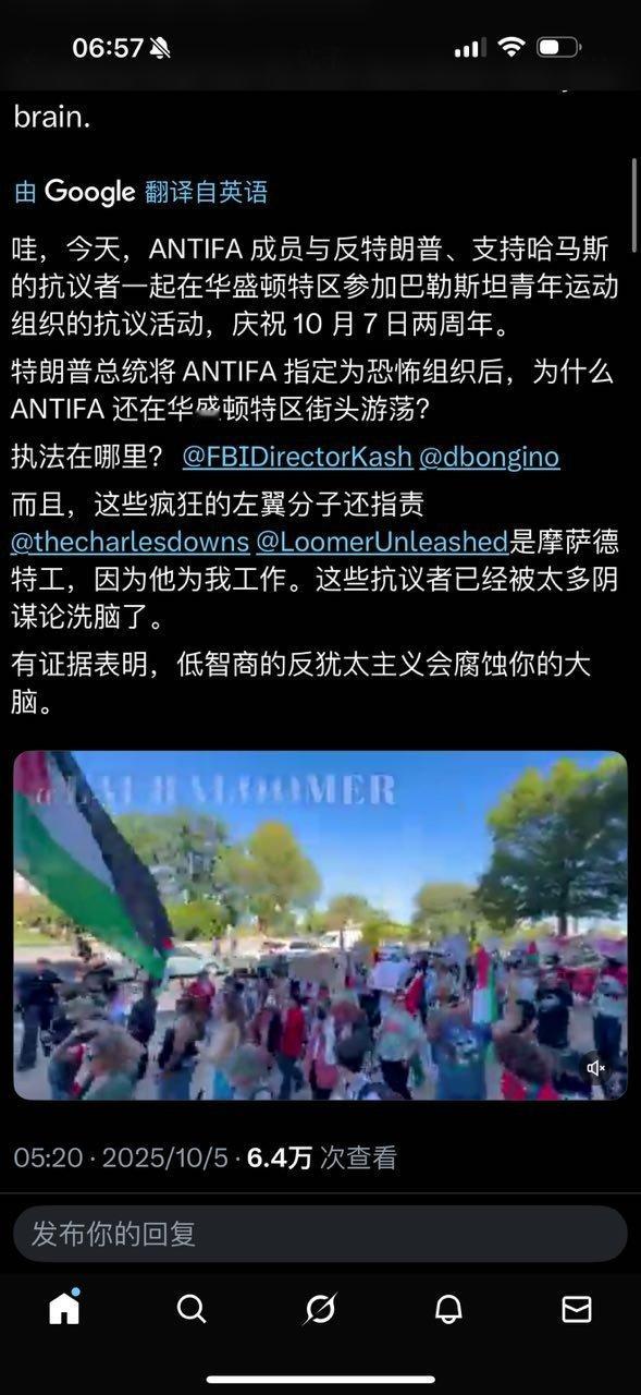 ANTIFA成员与反特朗普、支持哈马斯的抗议者一起在华盛顿特区参加巴勒斯坦青年运动组织的抗议活动,庆祝10月7日两周年。
