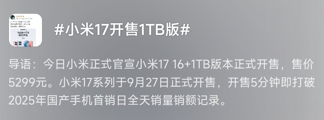小米17开售1TB版相比于隔壁标准版,512GB就7999了小米17还是太过于良 小米科技 小米17 iPhone 17 Pro Max iPhone 17 Pro 地球上的Alex 2025-10-05