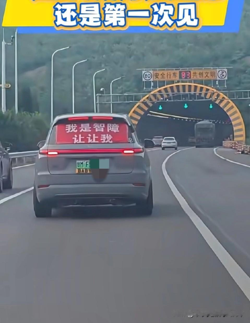 第一次见这么有素质的车,这是什么车 高速上撞见一台车,那操作把我看傻了!左右漂移就算了,车尾还贴着“我是智•障 让让我”的红标,这波“自黑式素质”真是活久见! 有人笑到喷饭:“这车主是懂反向操作的,生怕别人不知道他‘特殊’!”也有人皱眉:“这不是搞笑,是拿安全当儿戏!” 可话说回来,这种博眼球的开车方式,到底是幽默还是缺德?你要是在高速上遇到它,会让行吗.你觉得这种“奇葩车贴+骚操作”该点赞还是该批评?