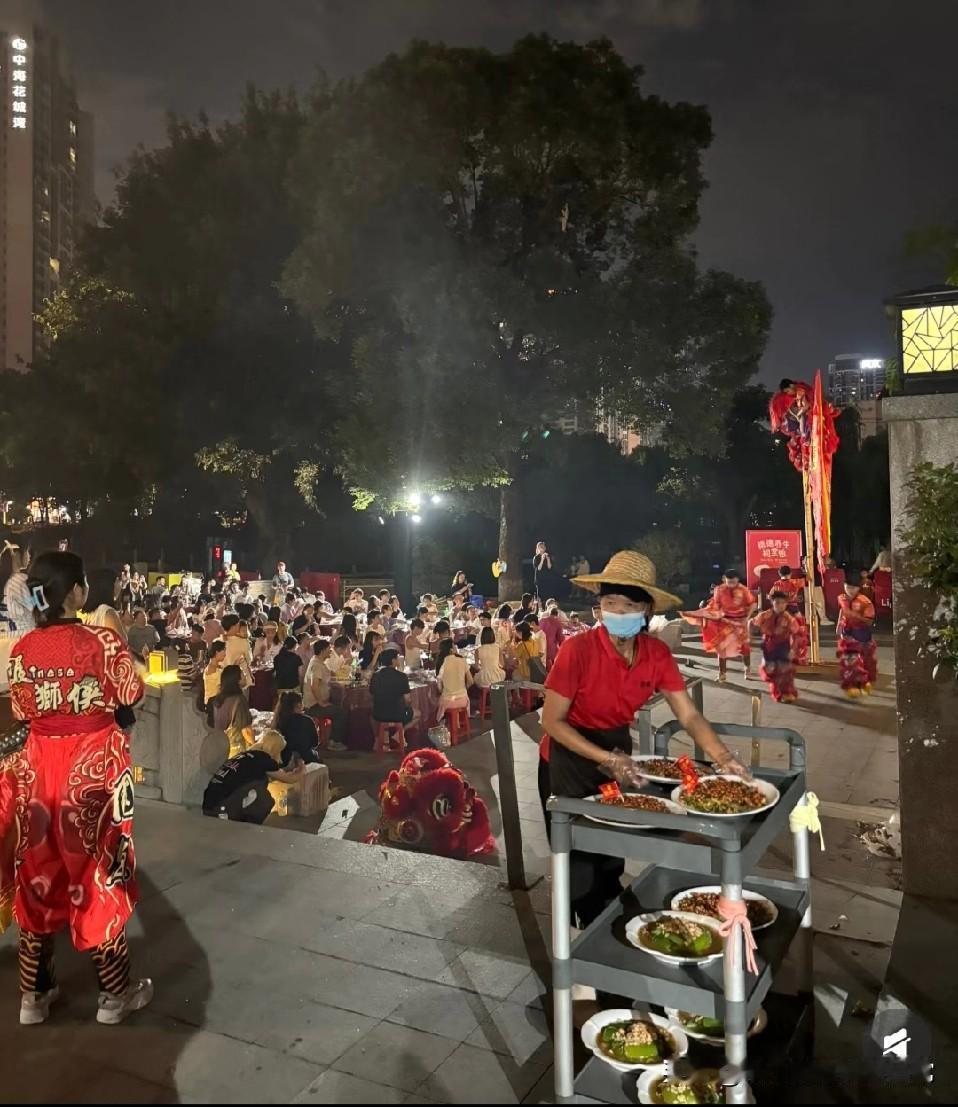 广州包租婆的团圆餐,暴雨天支块布照吃,这排面绝了! 广州包租婆们吃团圆餐,那叫一个硬核!暴雨天直接支块花布当顶,照样摆满烧腊、海鲜敞开吃;夜幕下上千人挤在一块儿,舞狮队在旁助威,排场比过年还炸! 有人说这是“土豪式团圆”,可在广州人眼里,这是街坊邻里的烟火情。钱花了,面子挣了,热热闹闹才叫生活! 但你别酸,这种大阵仗的团圆,是广州独一份的豪气,还是铺张浪费?你觉得,这样的团圆餐,到底是真性情还是太张扬?