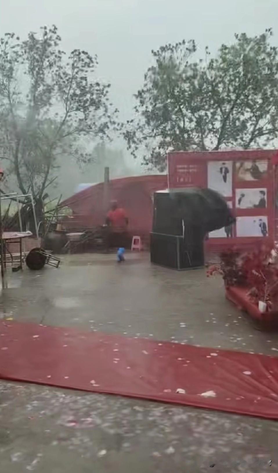 台风天办婚礼!新人硬核接亲,狂风暴雨当贺礼! 别人结婚盼晴天,这对新人偏在台风天办酒!狂风掀翻红帐篷,暴雨把喜酒浇成“落汤鸡宴”,宾客撑着伞在风雨里吃席,新人在泥泞红毯上交换戒指——这婚礼排面,老天爷亲自下场送“惊喜”! 有人说这是硬核浪漫,风雨同舟一辈子。你觉得这种“台风婚礼”,是铭记一生的勇敢,还是拿幸福开玩笑?