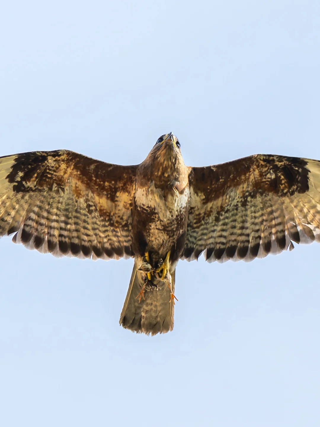 原创拍摄于2025.07 普通鵟,Eastern Buzzard,鹰形目鹰科鵟属。国家二级保护动物。 蓝马鸡,Blue Eared Pheasant,鸡形目雉科马鸡属。国家二级保护动物,中国特有种。 在马蹄寺三十三天石窟前,刚刚还在看可爱的蓝马鸡带着小鸡觅食,抬头就看见了一只鵟抓了一只蓝马鸡的宝宝飞过头顶。 附一张p5蓝马鸡宝宝的图(被抓的并不是这一只)。 国二吃了国二,好像也说不了什么[汗颜R]。就是可怜小宝宝啊🥺