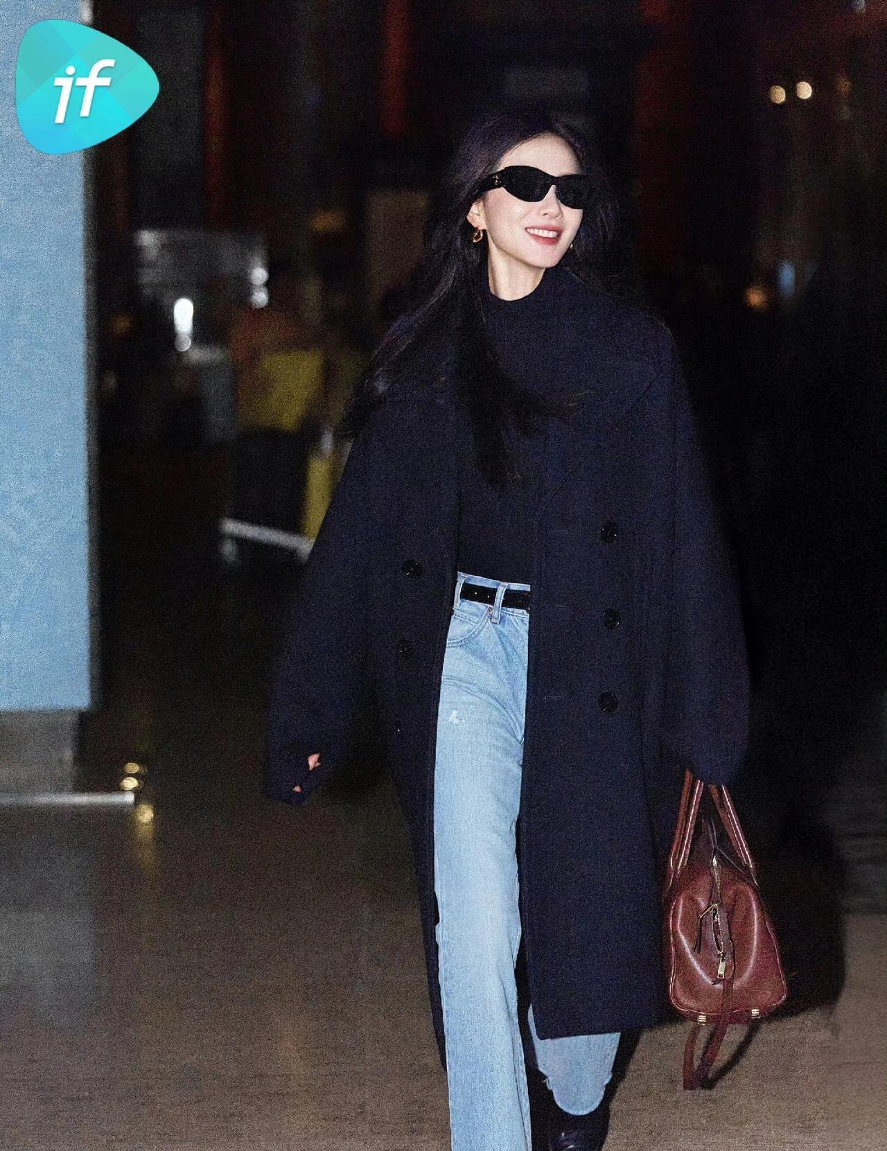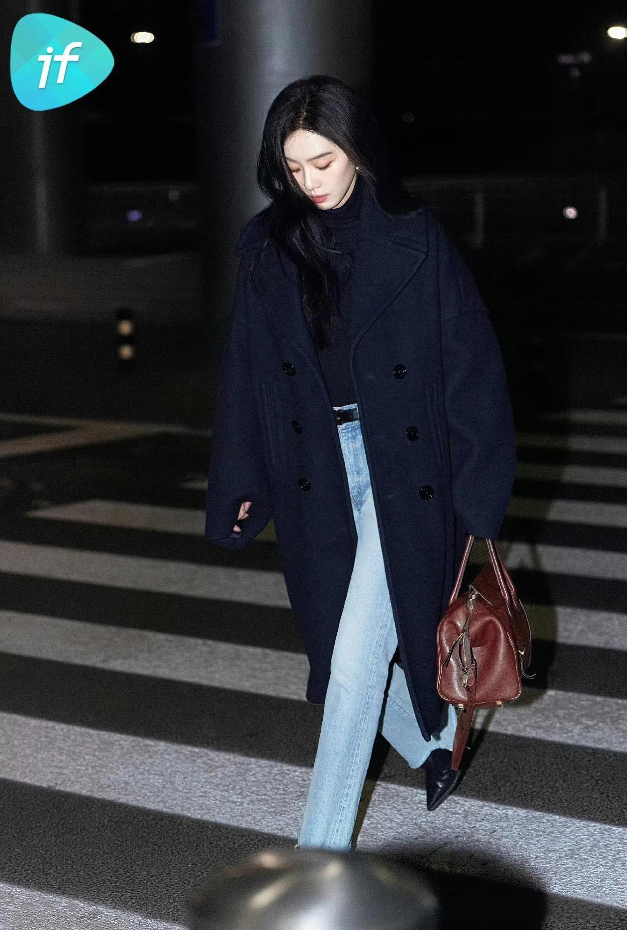 天呐,刘诗诗这组机场图是真的美到失语! 简单的纯色双排扣大衣配紧身内搭牛仔裤,在