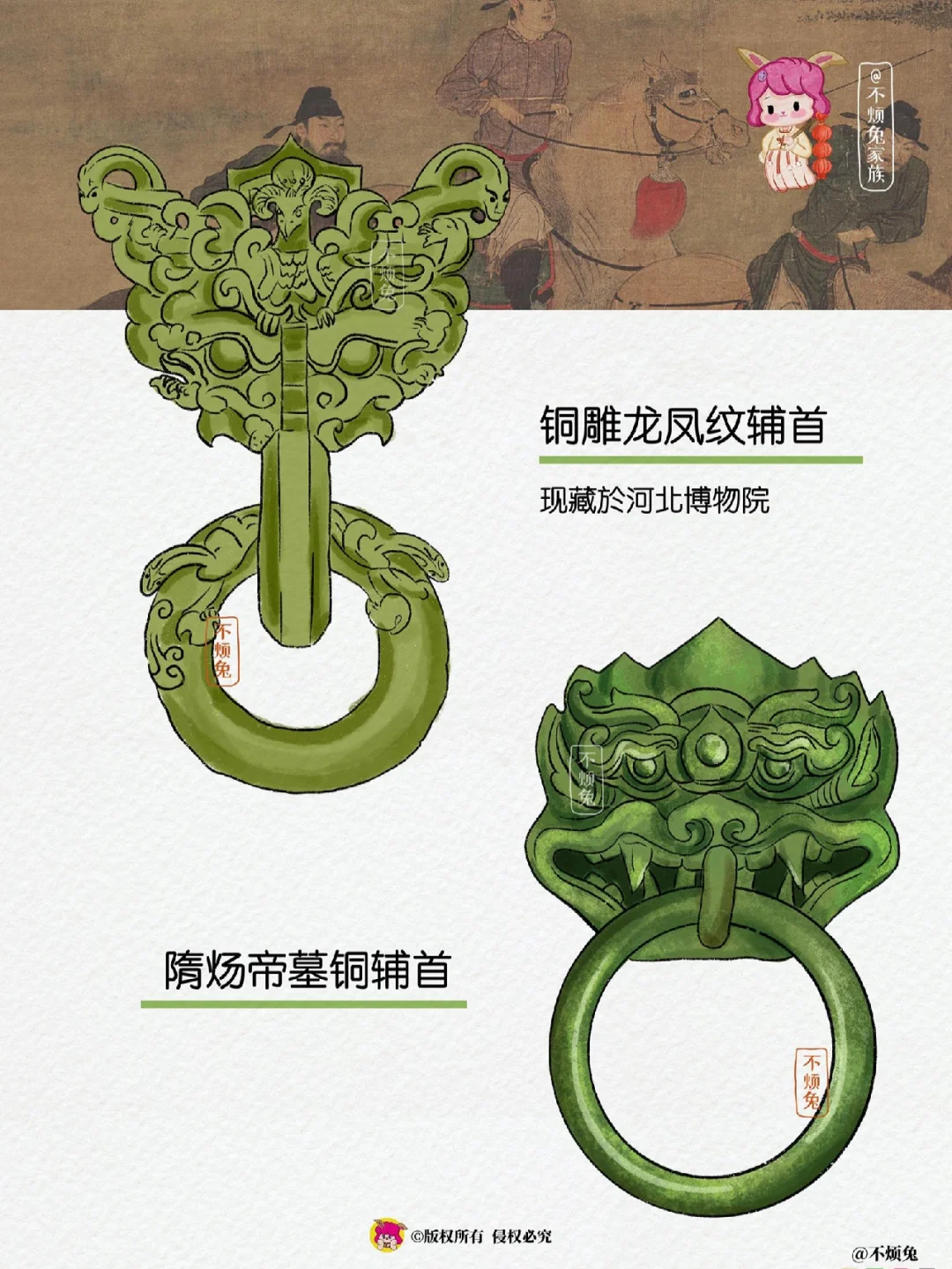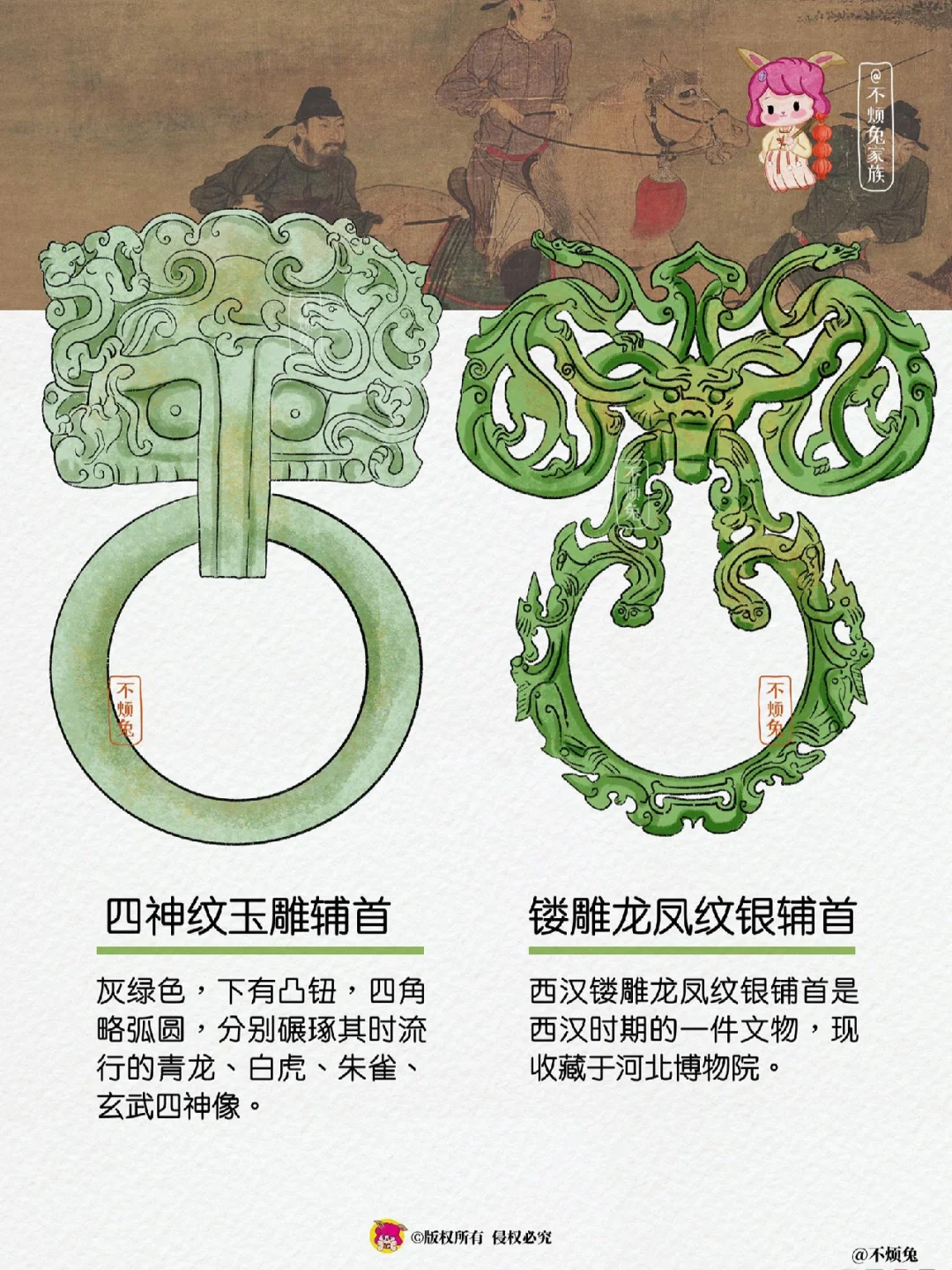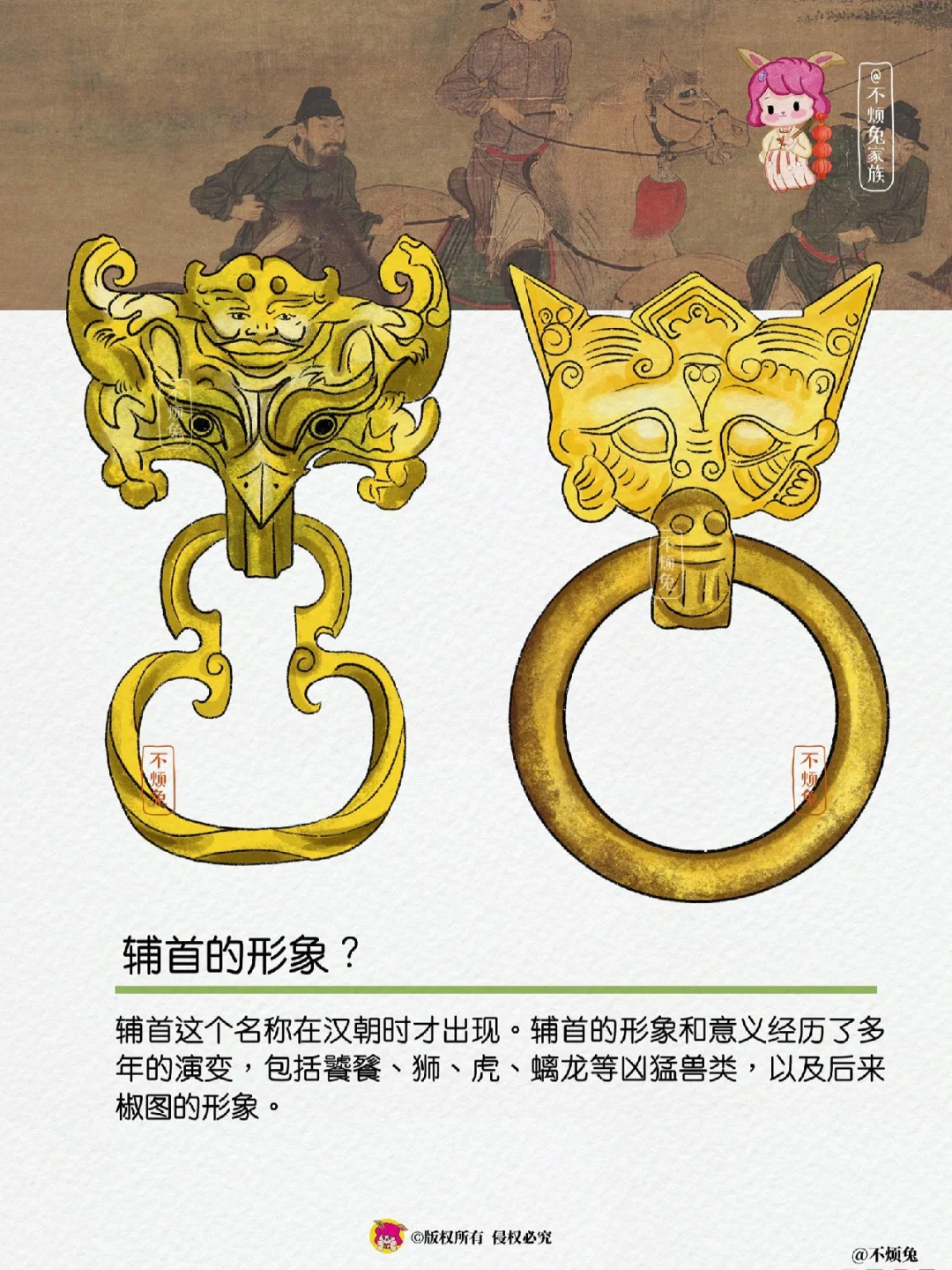 🟢辅首这个名称在汉朝时才出现。辅首的形象和意义经历了多年的演变,包括饕餮、狮、虎、螭龙等凶猛兽类,以及后来椒图的形象。