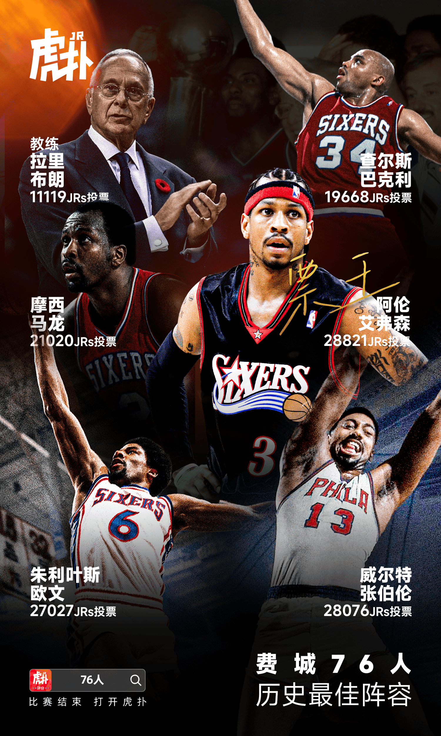 JRs共同评选出的76人队史最佳阵容,与你心目中的最佳阵容是否一致呢?