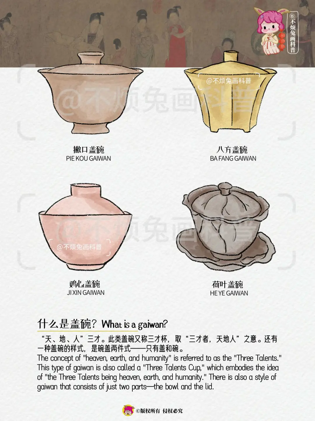 今天来聊聊超有韵味的盖碗!这不仅仅是一个喝茶的工具,简直就是一件艺术品,还承载着满满的传统文化哦。盖碗,又称“三才碗”,由盖、碗、托三部分组成,分别象征着天、地、人,寓意着天地人和。这种设计不仅体现了中国古代哲学思想,还让每一次品茶都充满了仪式感。