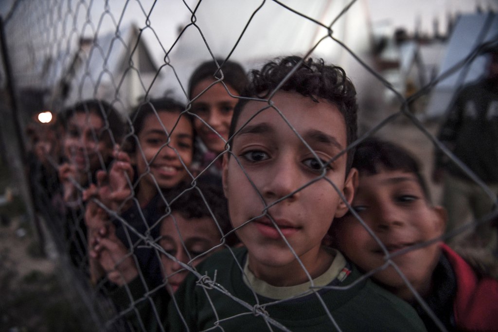 当地时间2023年12月21日,加沙地带拉法省,巴勒斯坦儿童离开家园,在拉法城避难。视觉中国图