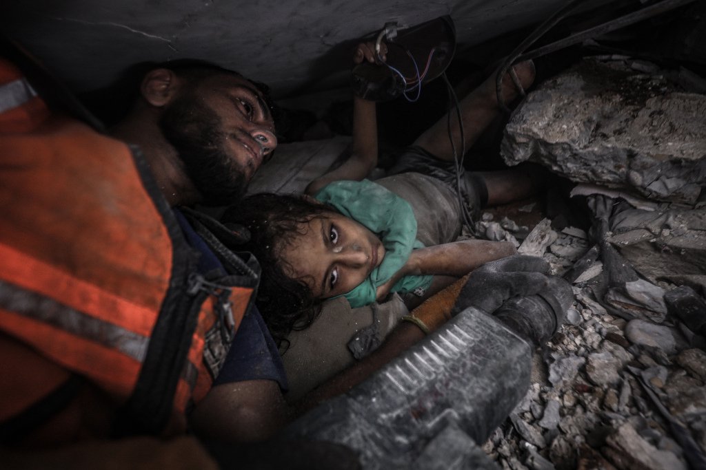 当地时间2025年9月16日,加沙城,以色列袭击了谢瓦广场的一个居民区,11岁的巴勒斯坦女孩马拉赫·哈达德被困在废墟下,经过近10个小时的努力,民防部队将其救出并送往浸信会医院接受治疗。视觉中国图