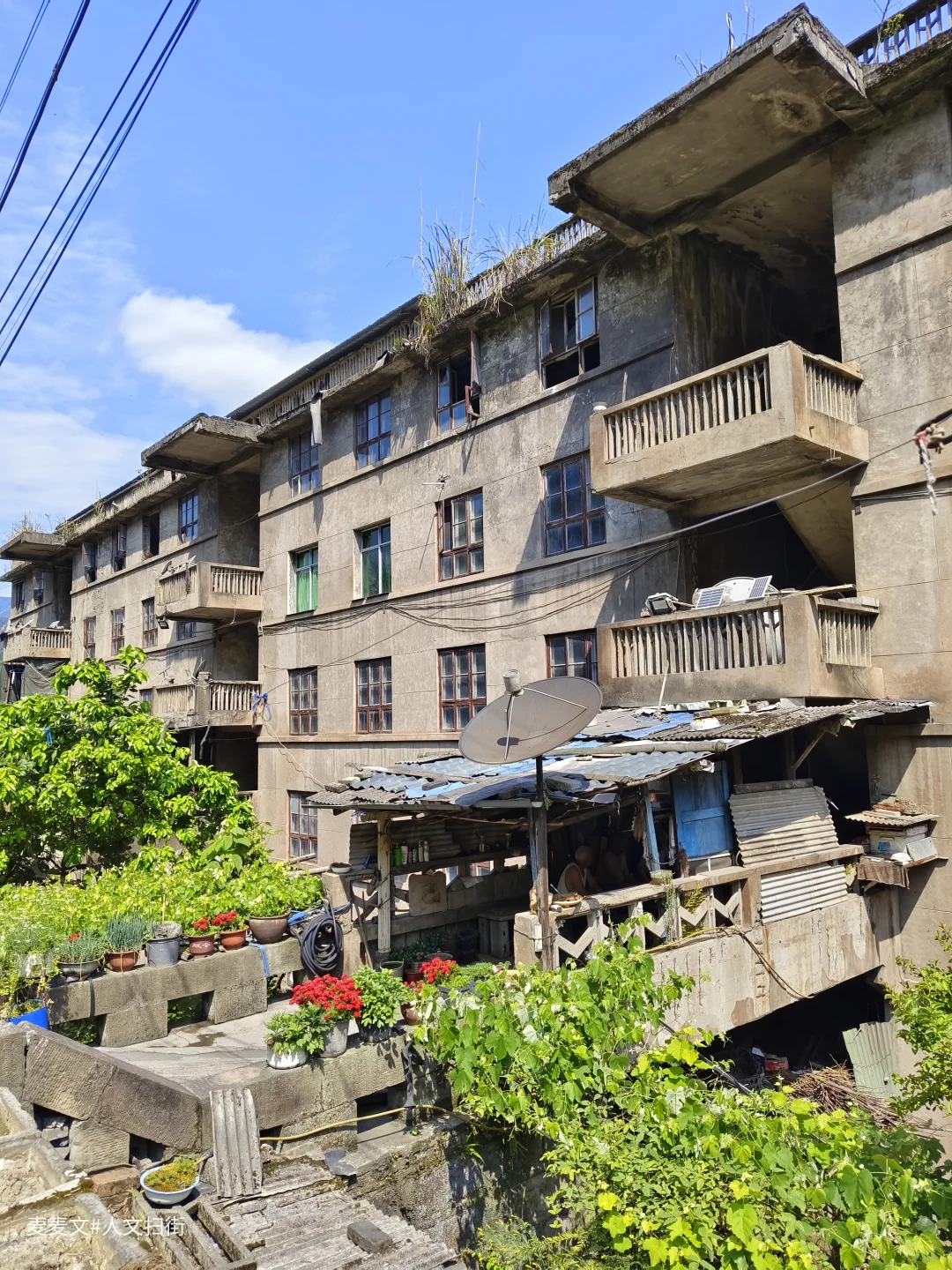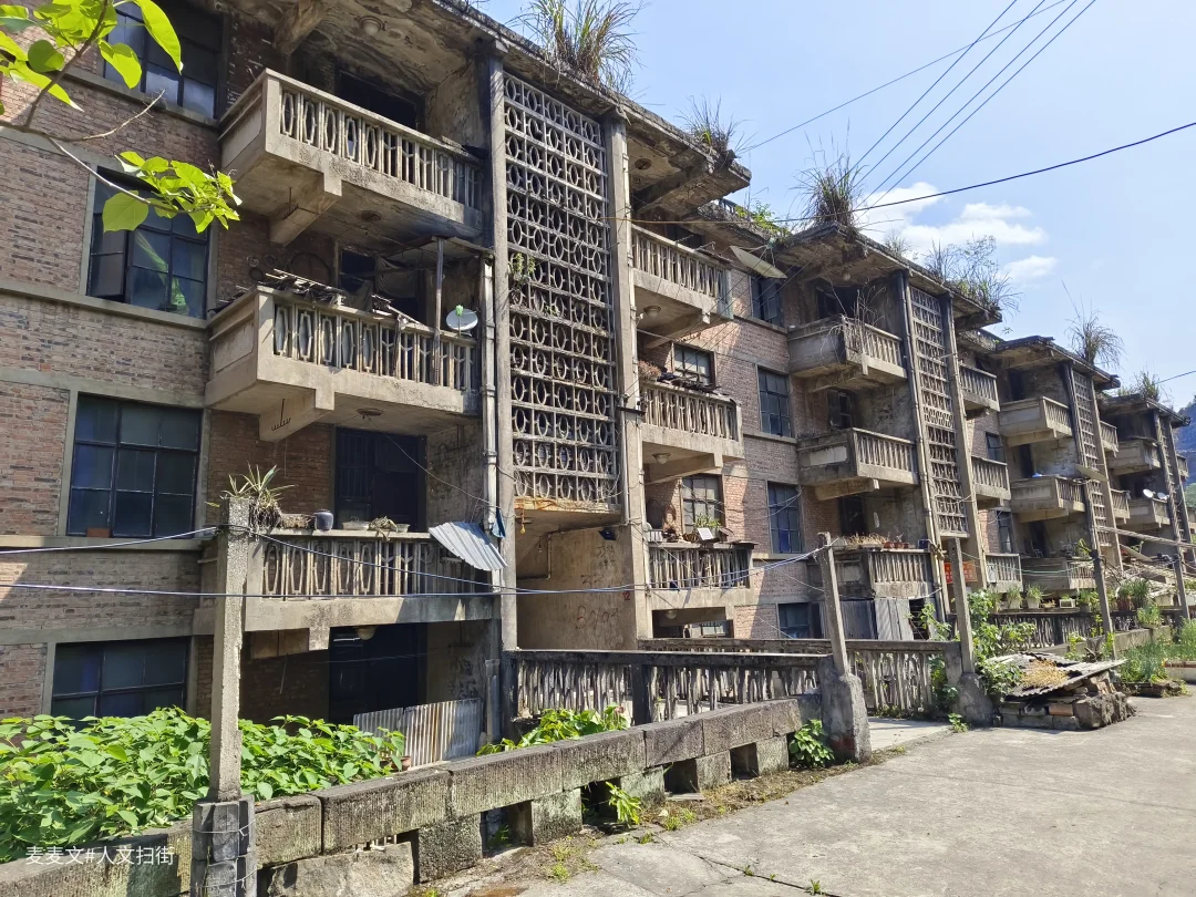 在重庆綦江大山深处,隐匿着一座军工厂家属院。斑驳的楼房墙体爬满岁月痕迹,混凝土结构泛着陈旧色泽,镂空的墙体设计似在诉说往昔故事。楼道阳台略显破败,绿植却倔强生长。 一位老人拄杖缓行,身影孤独又坚毅。这里曾热闹非凡,承载着无数家庭的梦想与生活。如今繁华褪去,只剩宁静与沧桑。那些关于青春、奉献的记忆,在时光里沉淀,虽已远去,却从未被遗忘,成为双溪独有的历史印记。