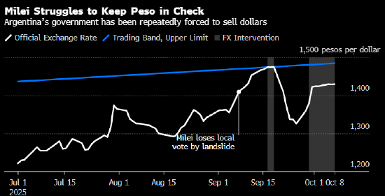 随着阿根廷政府不断消耗储备来支撑陷入困境的阿根廷比索,该国投资者正在加大对本月中期选举后总统哈维尔·米莱将让比索贬值的押注。