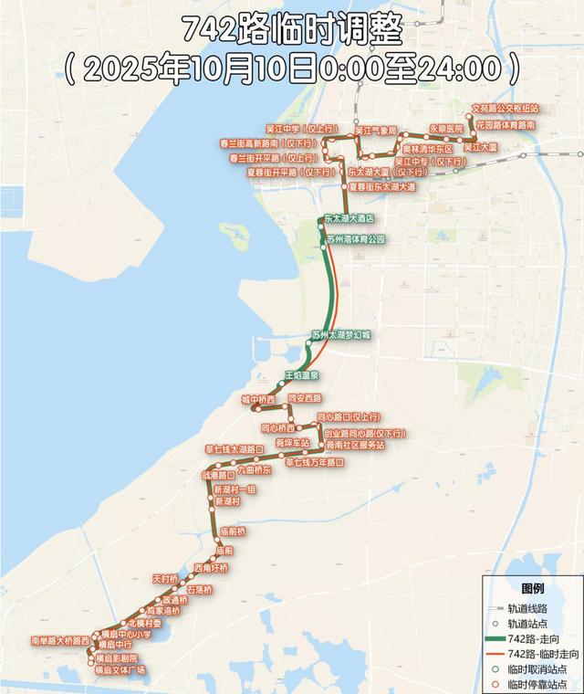为配合2025环太湖国际公路自行车赛,计划于2025年10月10日0:00至24:00对公交716路、742路、726支线进行临时性调整,现将线路方案公告如下: