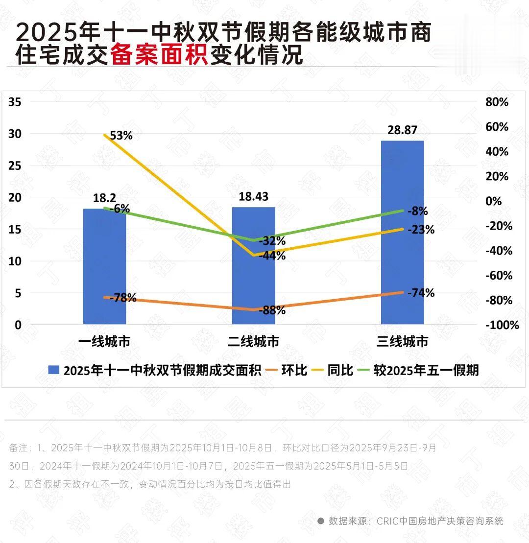 表现在数据层面,“银十”开局可以用“平淡”来概括:CRIC监测的重点22个城市国庆假期认购面积同环比下降超3成。