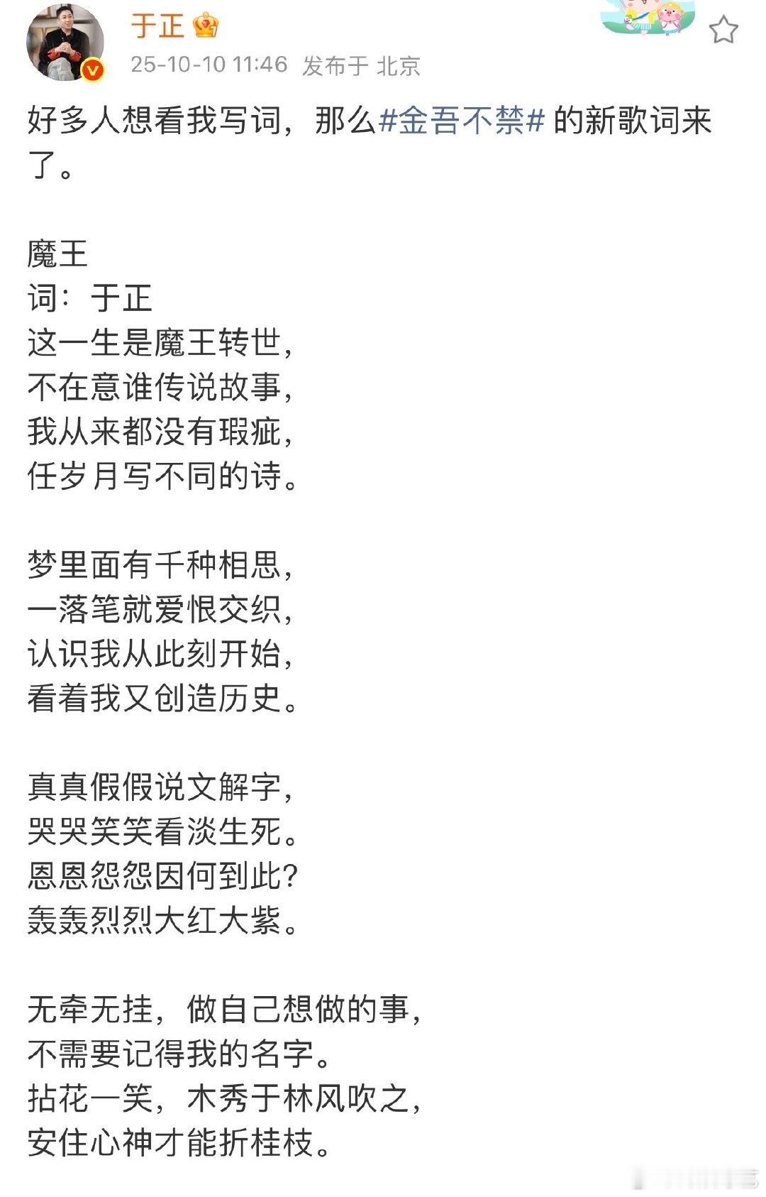 于正给金吾不禁写的新歌词于正魔王于正给金吾不禁写的新歌词魔王,什么水平?