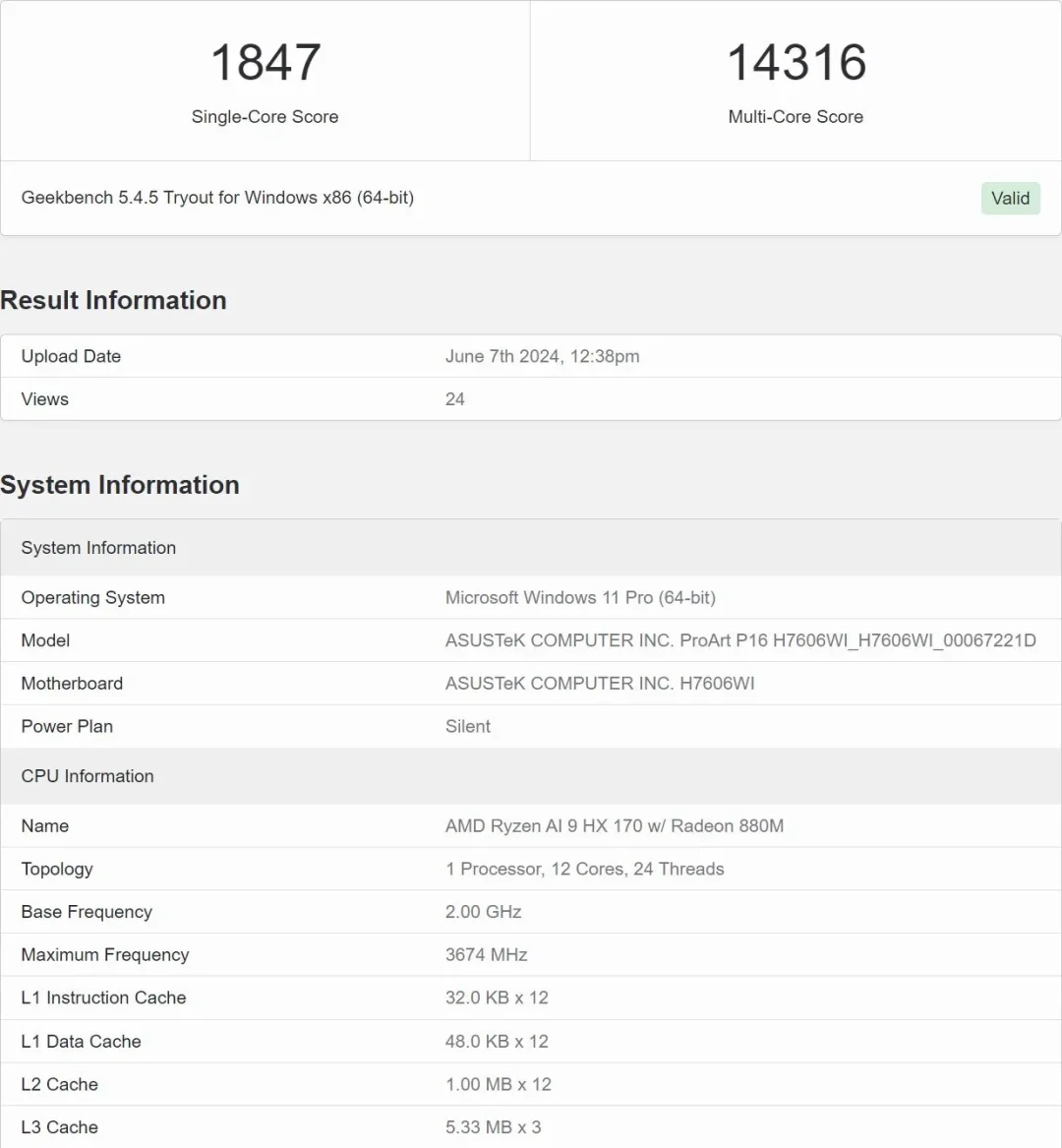 最新一代的AMD Ryzen AI 9 HX 370处理器曝光,从信息来看,采用了12核心24线程,全新的890M核显,高达24M三级缓存,28w的热设计功耗,简直起飞。GeekBench 6上已经出现了这颗芯片的跑分,单核成绩为 1847 分,多核成绩为 14316 分,相当凶猛,用到轻薄本上的话续航更强、核显性能更强。