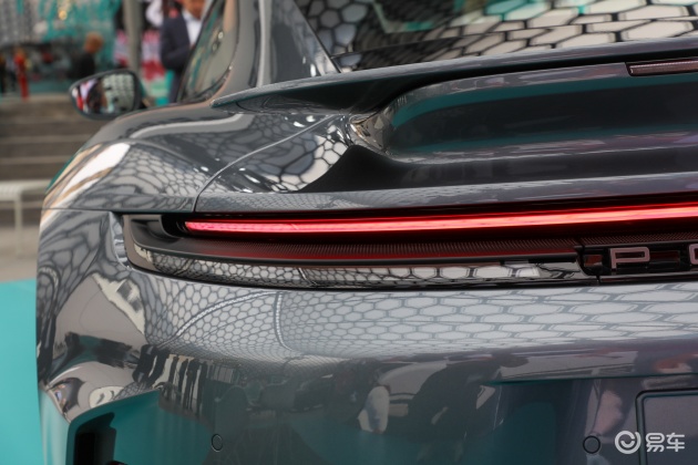 新车的外观设计与现款911的车身设计保持了高度一致,采用了保时捷家族式的设计语言,前进气格栅采用了五横幅式的造型,并且在中网上方还采用了贯穿式的镀铬饰条进行装饰,两侧的大灯与进气格栅连接,拉宽了车头的整体感。车的侧身设计与前脸有着一定的相似性,车窗采用了银色的装饰条包裹,腰线从车头一直延续到尾部,并且贯穿整个车身,车的尾部采用了溜背式的设计风格,尾灯采用的是贯穿式的设计,尾灯的造型和前脸的设计风格相呼应,点亮后的效果还是非常出色的。