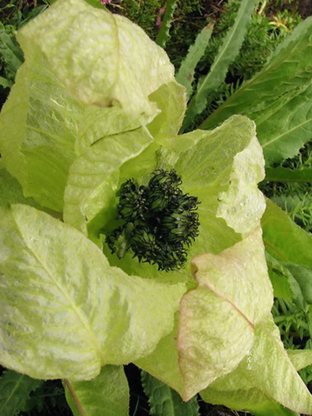 ✨圣洁佛光:淡黄色半透明苞片层叠包裹,形如莲花宝座,内藏深紫色花序