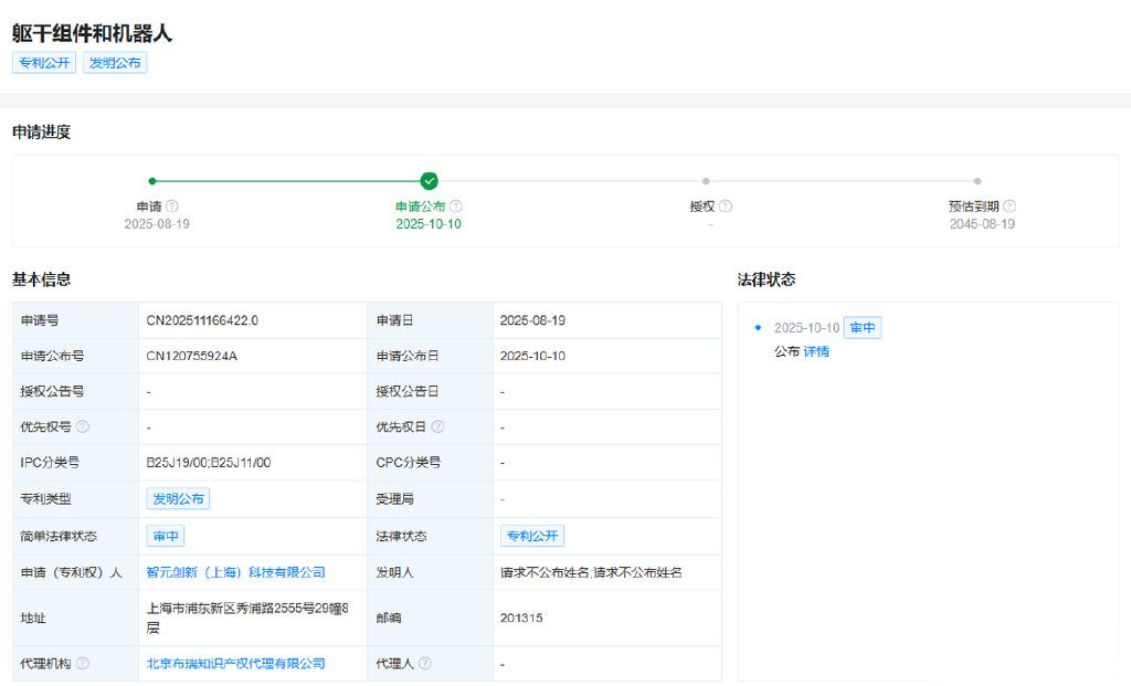 10月10日,智元机器人申请的“躯干组件和机器人”专利公布。摘要显示,本申请涉及机器人技术领域,尤其涉及一种躯干组件和机器人,解决了躯干组件的布局不合理,导致机器人的续航性能差的问题。