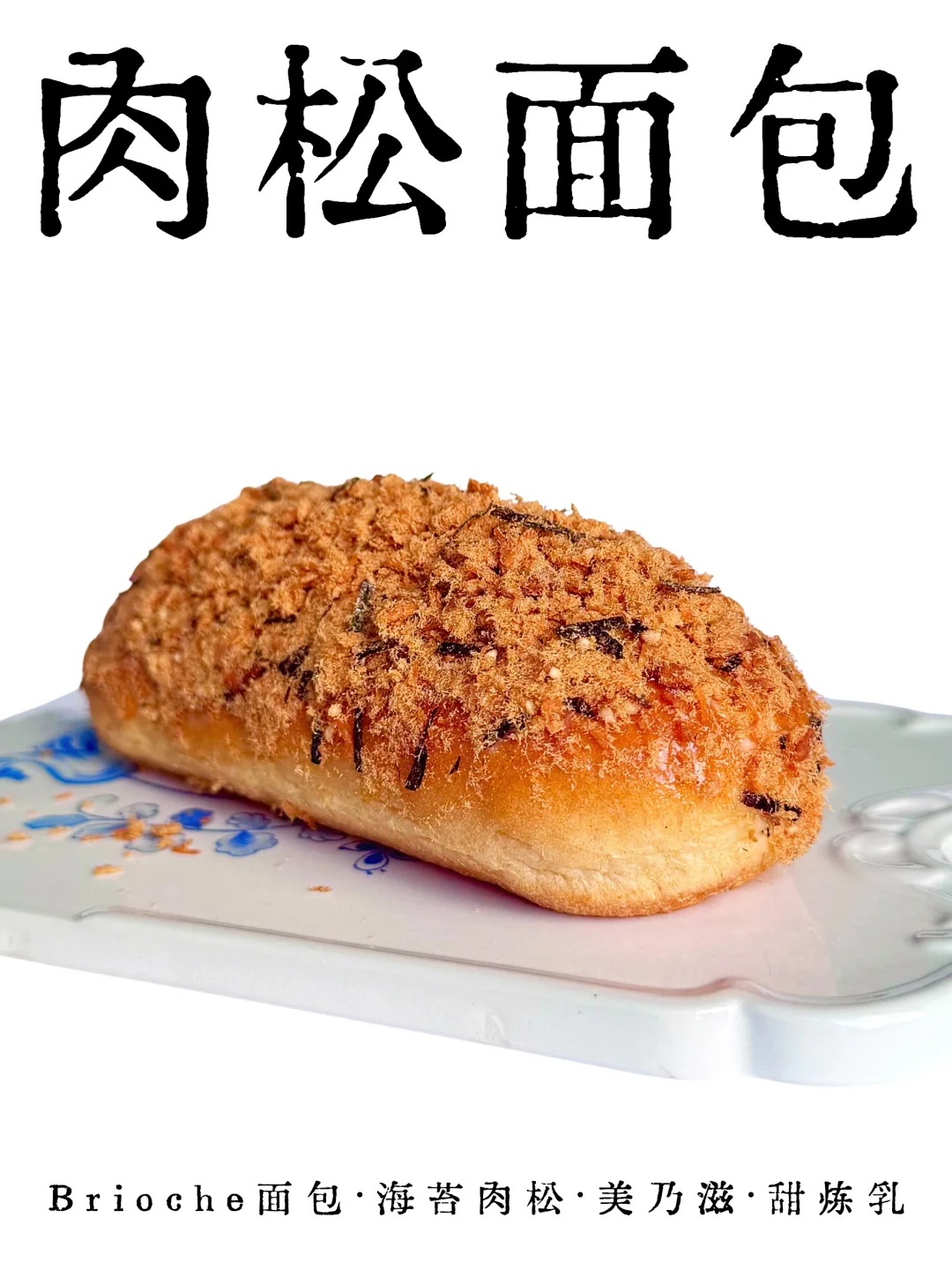 面包房同款肉松包! 包体松软🍞酱多料足🤤 每口都会爆浆🌋 正啊~~~~~~~~ 👉Tips Brioche是法式黄油鸡蛋面包 口感松软带点甜味 做肉松面包用Brioche这种即🉑 形状品牌不限