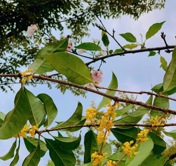 桃花和桂花同框,仿佛乱了季节。橙友“天蝎园儿”摄