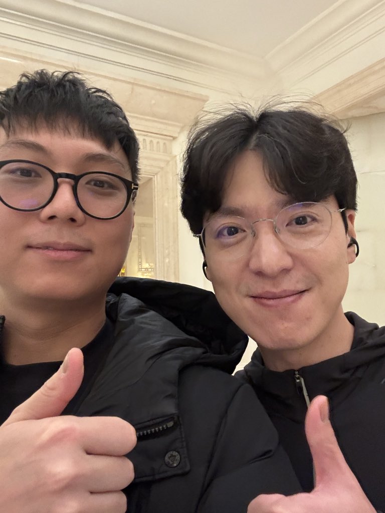 VKS教练SeeEl分享与T1主教练kkOma合照:两人比出点赞手势
