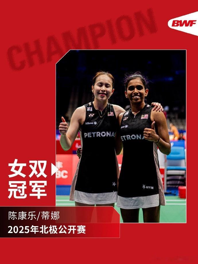 直播吧10月12日讯陈康乐/蒂娜2-0击败岩永铃/中西贵映,夺得2025年北极羽毛球公开赛女双冠军。
