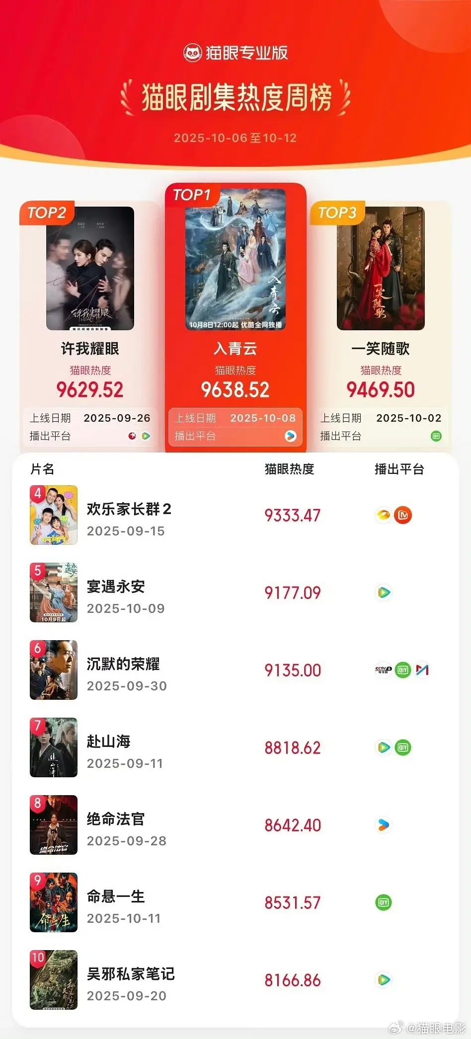《入青云》渐入佳境了,热度破9700,今天纪伯宰被雷劈名场面加广,侯明昊v榜连续两天破9登顶[送花花]