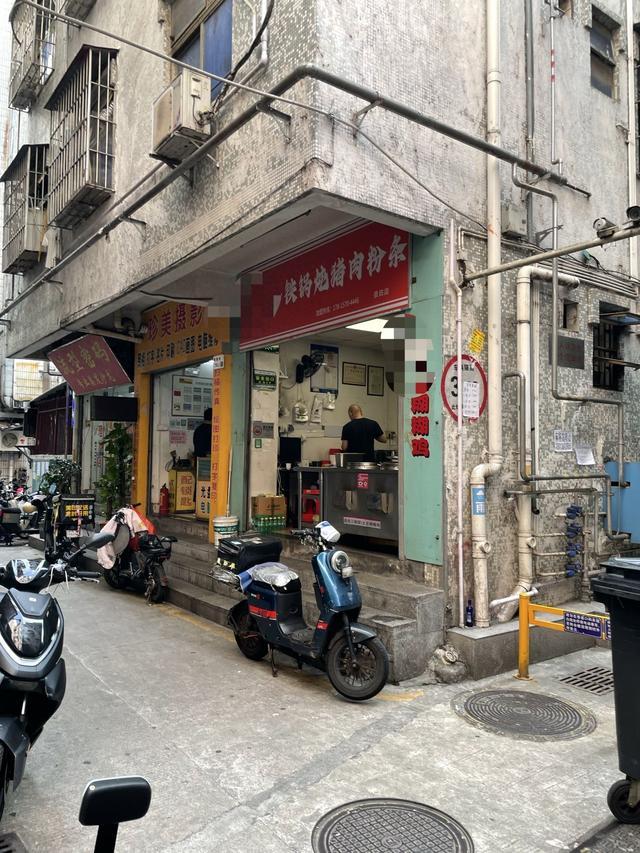 记者实地走访了这家位于下梅林河背村12-4的门店,该店位于昏暗小巷,内部陈设杂乱,照片显示的堂食餐桌堆满了水壶、碗筷、餐盆等生活用品,桌下更被原材料纸箱堆满,根本无法堂食。后厨近直播展示的区域稍显整洁,与实际环境形成鲜明对比。记者现场下单后,眼见着店员未洗手便直接从冰箱取鸡肉进行裹粉炸制。闷热环境中,店员还用衣服擦汗后继续操作。