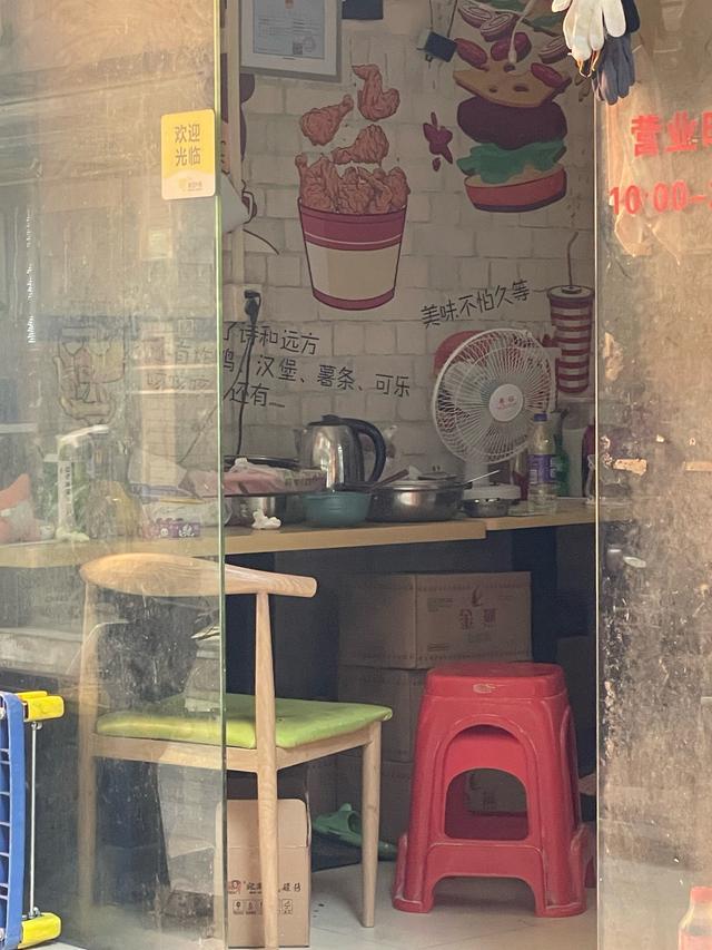 记者在现场探访发现,该店紧邻的是一家名为“XXXChicken韩式炸鸡店(梅林店)”的店铺,也是外卖平台的高分店。店铺货架上摆满了头盔、雨伞、儿童书本等生活用品,店铺内散落着锅具、吃饭的碗筷及其他厨房用品,且未发现供堂食的桌椅。这与该店在美团平台提供的明亮、整洁桌椅的堂食照片形成强烈对比。