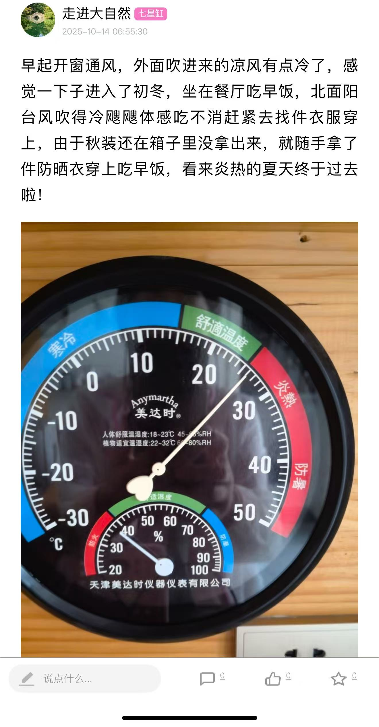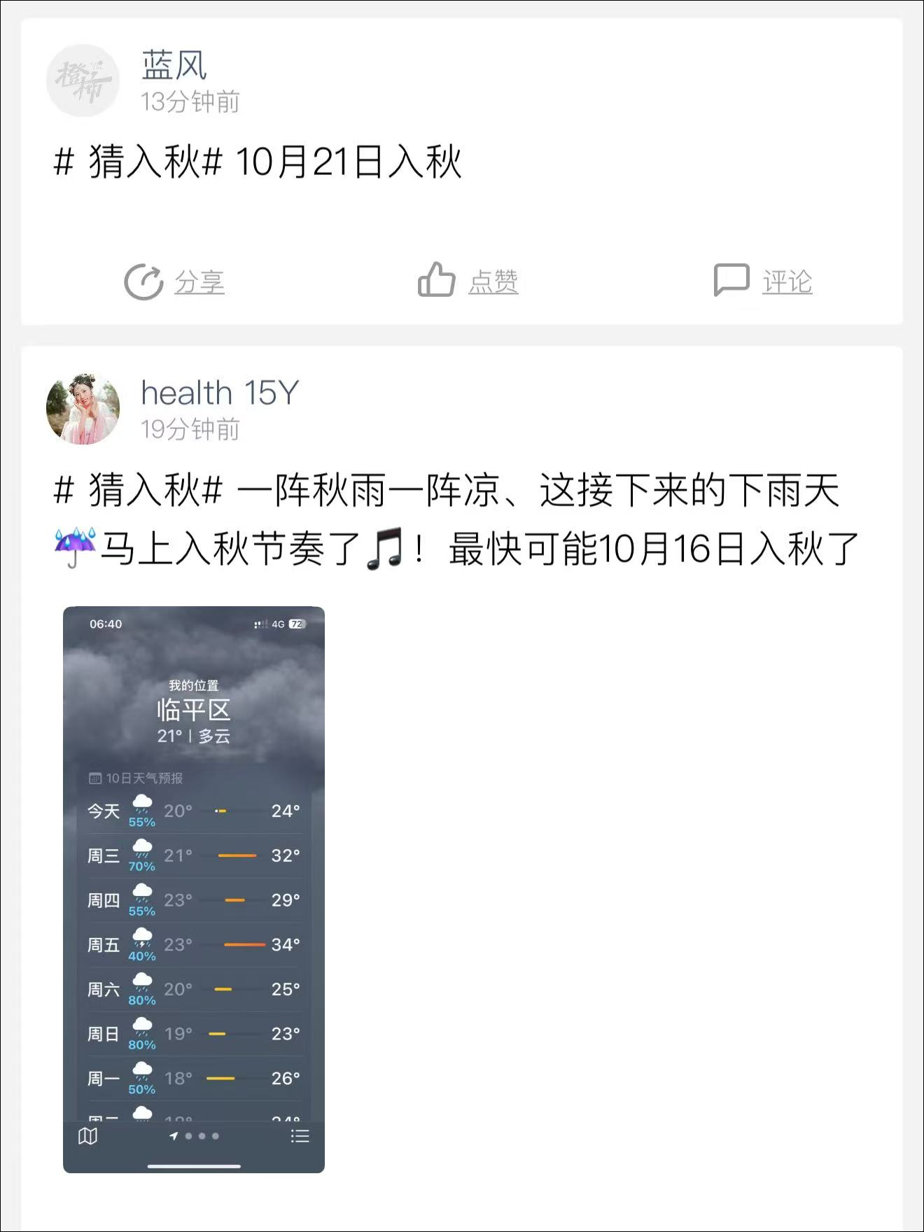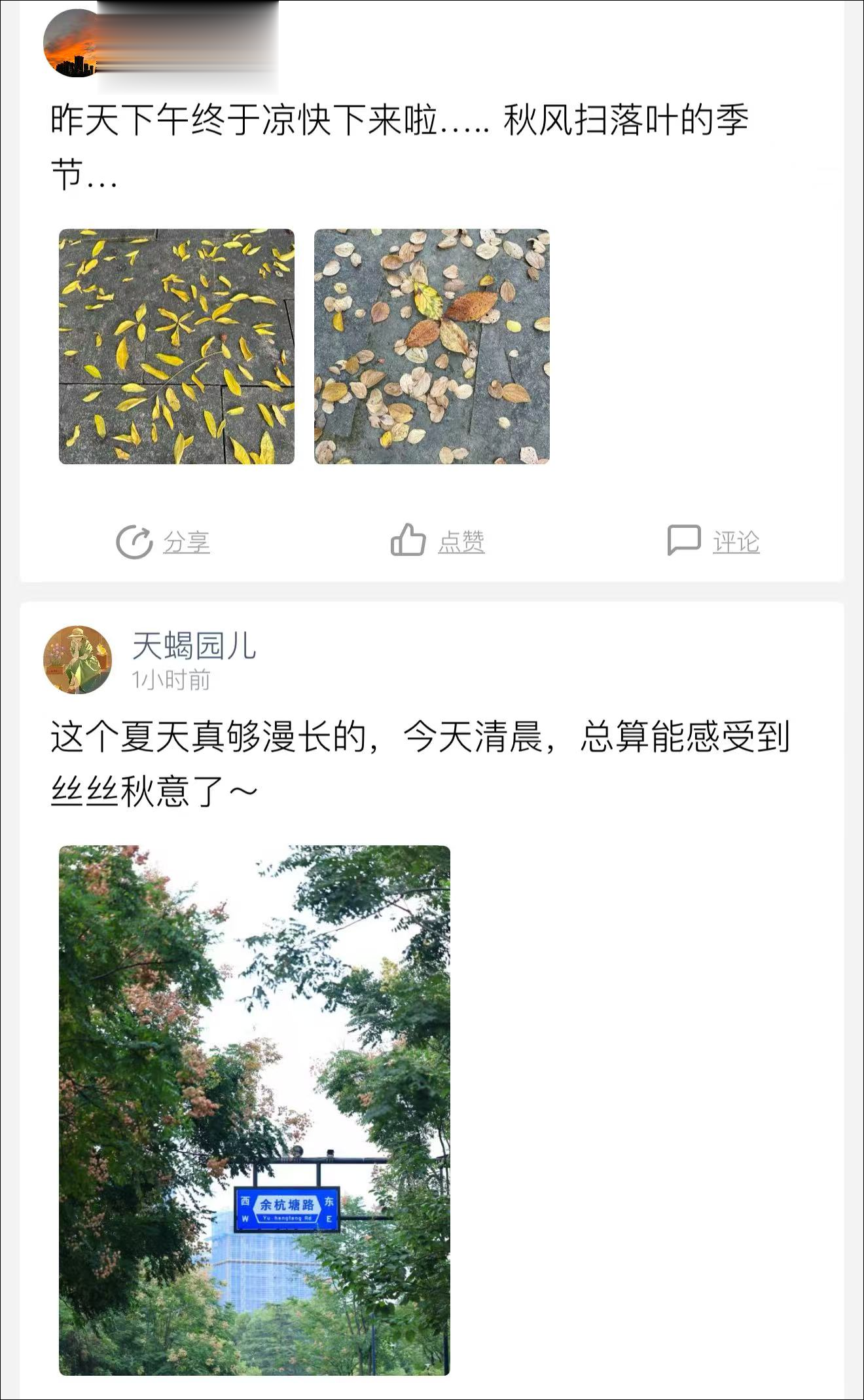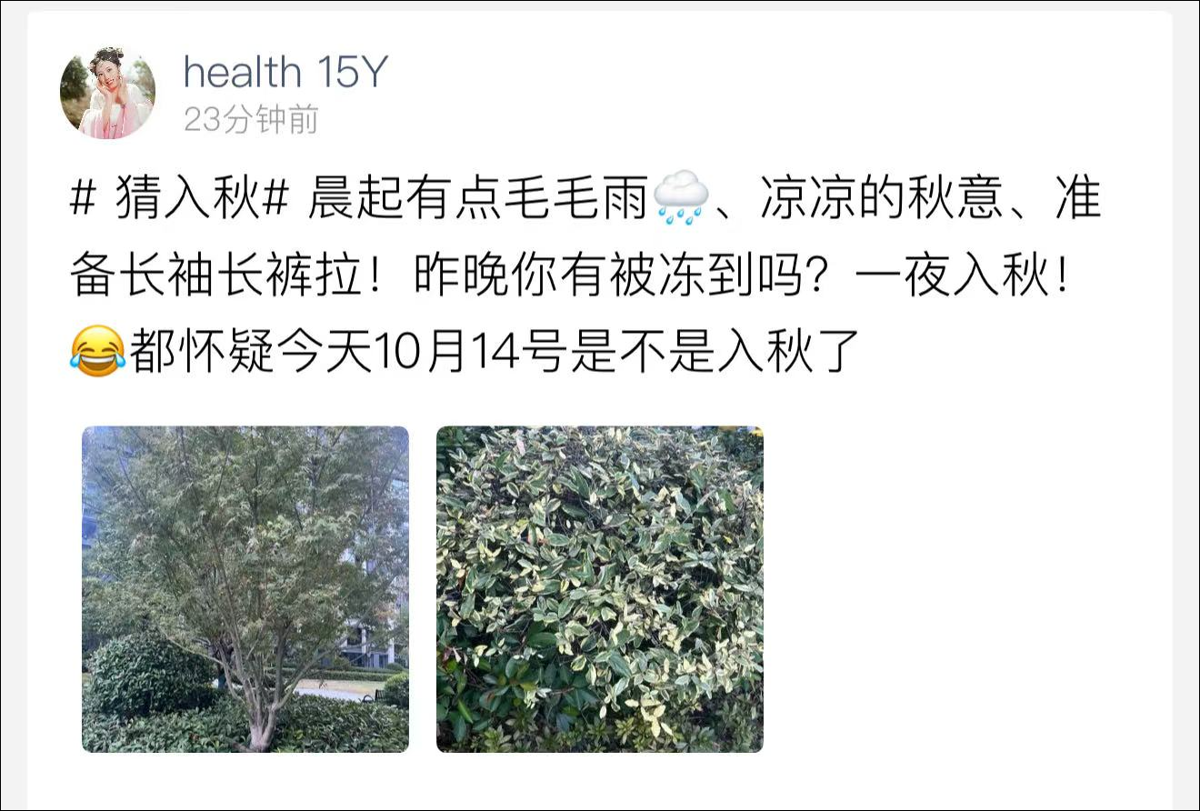 不少橙友发帖称:“总算能感受到丝丝秋意了。”
