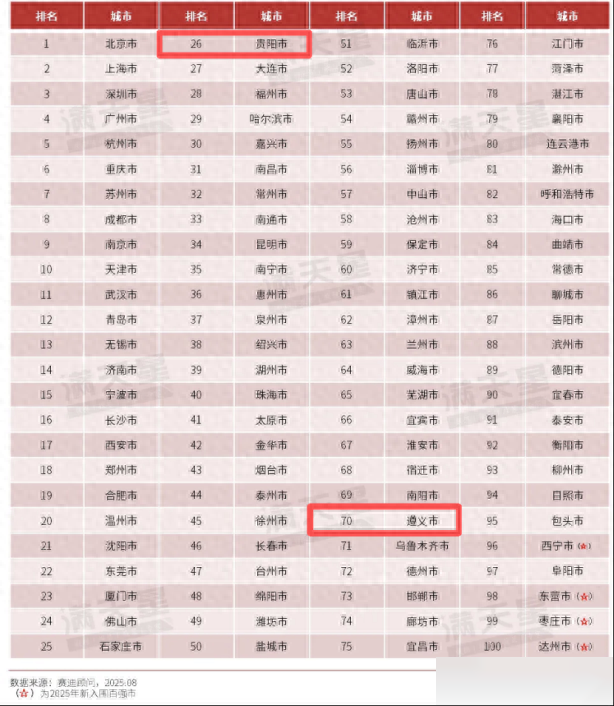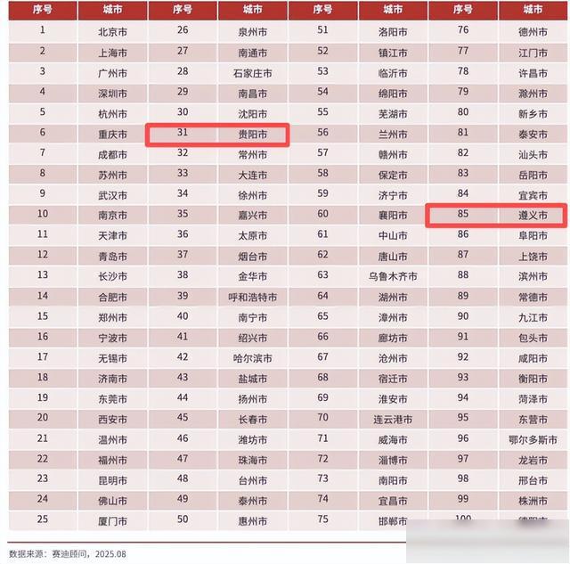 贵阳市、遵义市双双入列