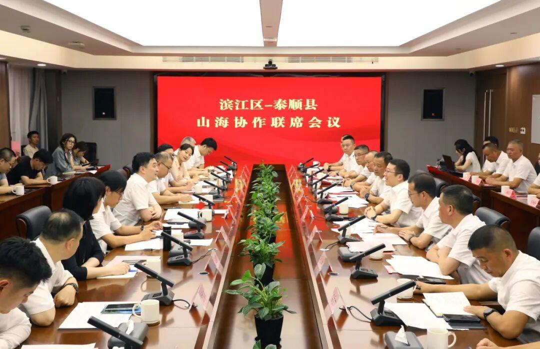 泰顺县委书记丁熠锋代表泰顺县委县政府向滨江区一行的到来表示诚挚的欢迎,并对滨江区一直以来对泰顺的鼎力相助表示衷心的感谢。他说,自开展山海协作以来,滨江区始终倾注真情、投入真金,推动山海协作结出了累累硕果。近年来,在省市各级的关心支持下,泰顺产业赛道不断拓展、城市能级持续提升、各方资源协同赋能,发展持续向上向好,为两地深化合作赋予了更多的空间和可能。希望两地未来进一步加强互动交流,调动双方优势资源,围绕产业共兴、人才引育、文旅互促、民生互惠等不断拓展延伸出更多新的协作领域,实现更大范围的优势互补,共同推动两地情谊“越走越亲”、共赢之路“越走越顺”,将滨泰协同发展打造成为全省山海协作的典范。