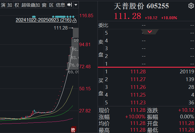 截至此次复牌前,天普股份年度涨幅已经达到794.5%,最新价报111.28元/股,年度涨幅位居所有浙江上市公司首位。