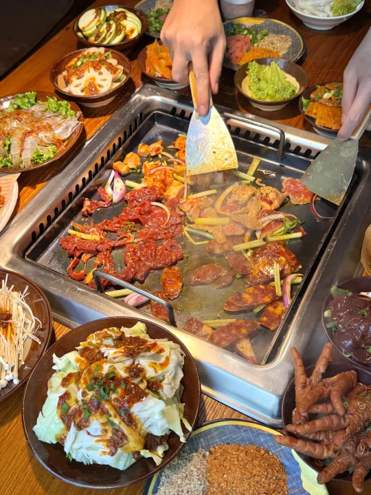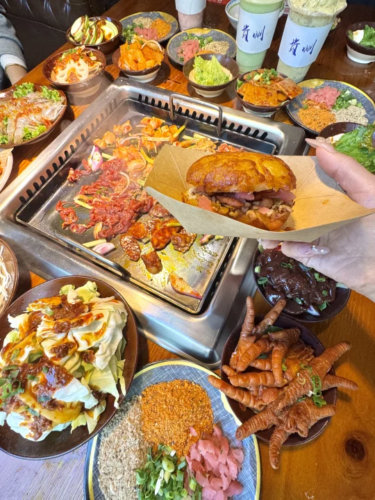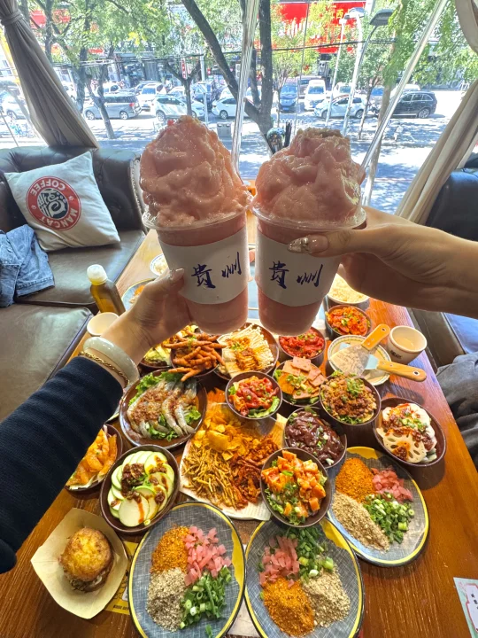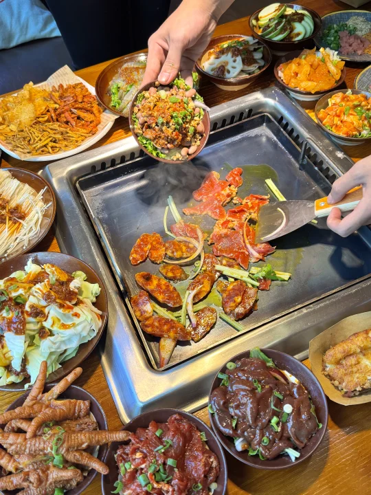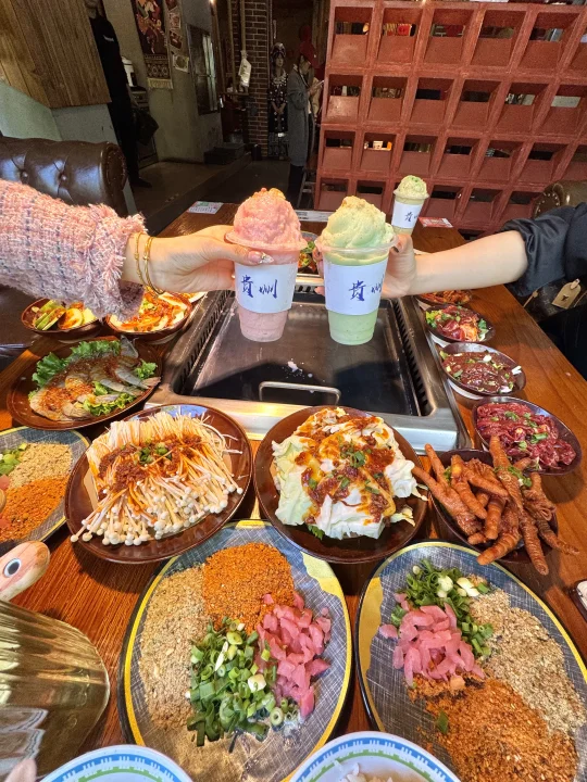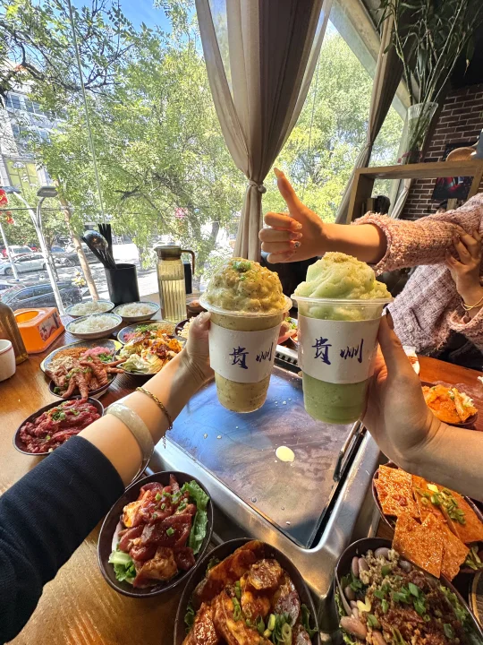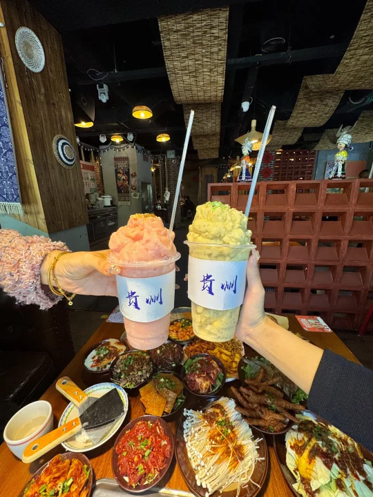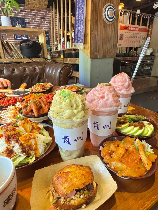 人均几十的贵阳铁板烧🔥 不起眼的小店 但味道别有洞天… 滋滋的烤炙声好治愈 这种小店好吃又便宜的小店 还得跟着大学生找!! 嫩牛肉、大虾、腊肠、猪肝、虎皮凤爪、西葫芦等等 一切皆可铁板…一大锅 满是烟火气 他家冰浆也是各种口味的都有 毛辣果、黄瓜、百香果 冰冰凉凉🧊还有糯米的口感 敲好吃 🌟还有烤洋芋 里面有脆哨 酸萝卜 好好吃🥔