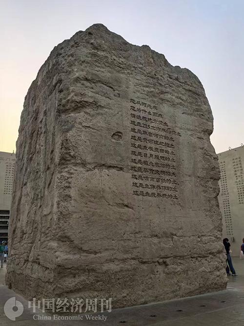 这215立方米的黄土,是从黄河岸边拉来堆砌而成。在墙面上,镌刻着河南17个省辖市和济源示范区、100多个县区以及1700多个乡镇的名字。