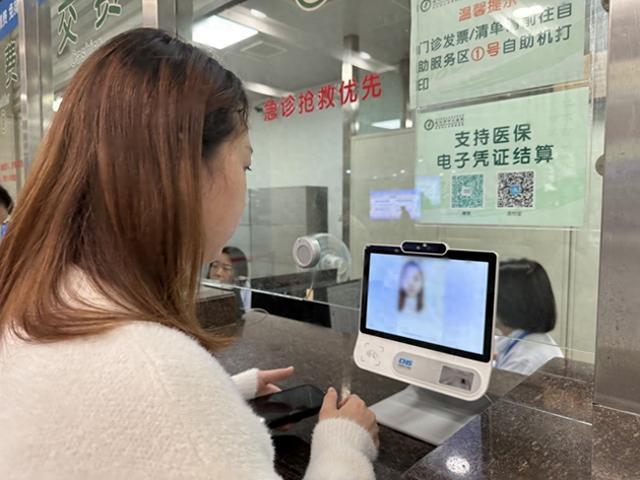 患者在医院门诊缴费窗口”刷脸“进行医保结算。