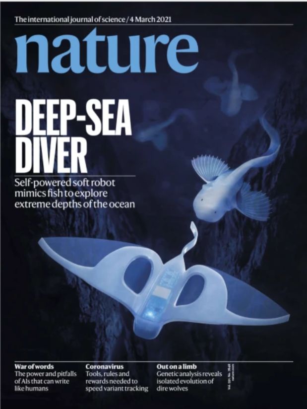 这条机器鱼曾遨游于海洋最深处马里亚纳海沟,由软体人工肌肉驱动一对翅膀状的柔性胸鳍,通过节律性扑翅实现游动,无需耐压外壳就可以承受万米级别的深海静水压力。