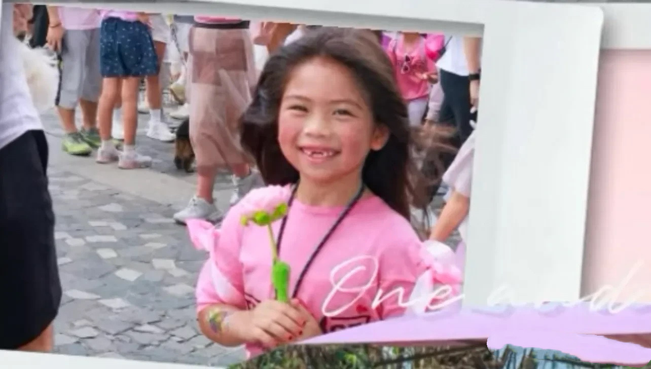 别看荷包蛋只有6岁,小姑娘气场很强、有一种从容不迫的镇定感。她穿了一件假两件的粉色T恤、渐变色的半身裙,肩膀处还点缀了粉色蝴蝶结,可可爱爱的。