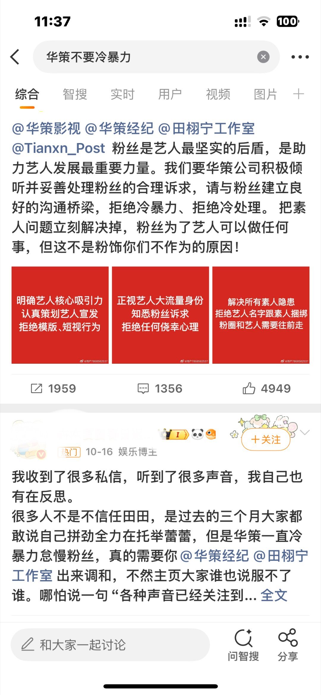 已经开始换话术了,之前还说不要让画册冷暴力粉丝,现在狗仔喊话完改成支持画册冷暴力全世界了