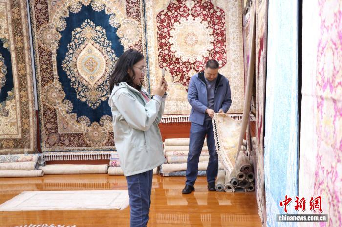 广东游客林丽荣参观完地毯博物馆后说:“这些用古法编织的手工地毯让人惊艳,符合年轻人的审美,我打算买一块带回去。”