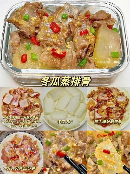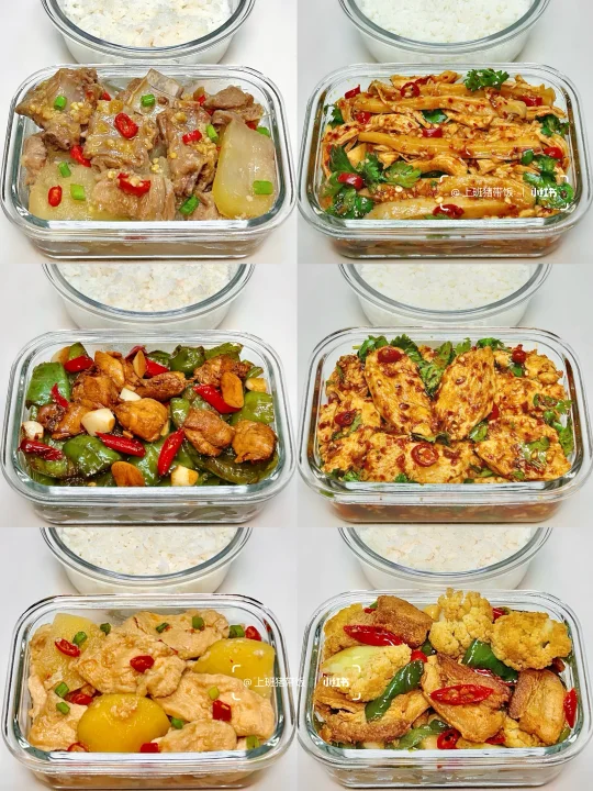 一眨眼,秋天又到了,又是大吃大喝屯肉的季节了,姐妹们不要掉以轻心哦,继续吃我们的减脂餐~~~ 今天给姐妹们整理了6道简单的隔夜菜,好吃营养还能减脂,只需半小时,明天的午餐就准备好了,姐妹们跟我学起来吧~~~ ﹣ 一周隔夜菜合集 1⃣冬瓜蒸排骨 2⃣杏鲍菇拌鸡胸肉 3⃣辣椒炒鸡腿 4⃣酸辣鸡胸肉 5⃣土豆蒸鸡胸肉 6⃣花菜炒五花肉