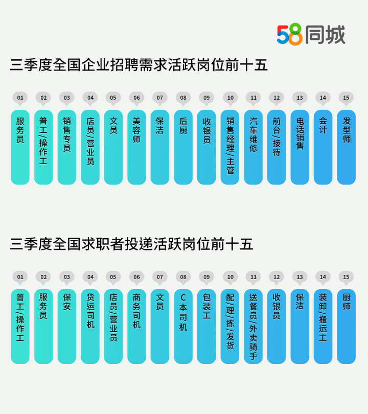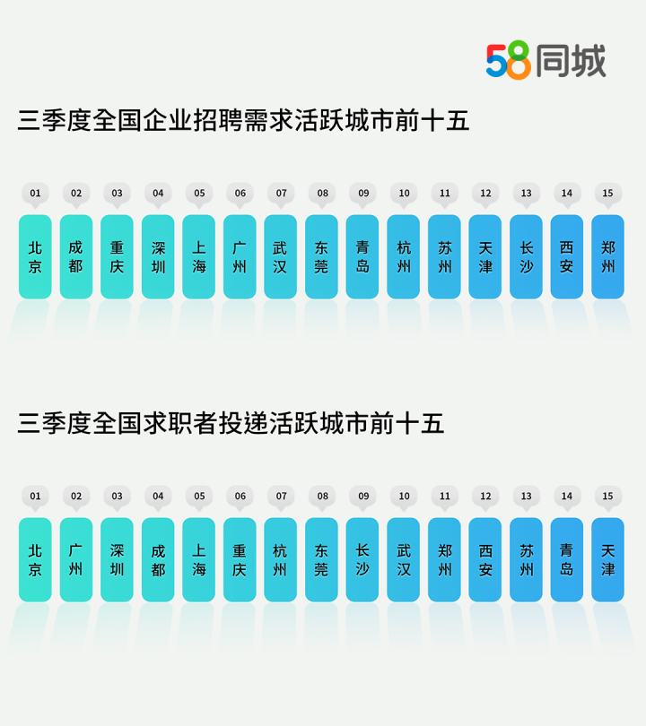 三季度招聘市场数据的变化,既折射宏观经济温度,也承载无数个体梦想。作为国内领先的生活服务平台,58同城打造覆盖招聘全场景的AI产品矩阵,在促进人才流动和岗位匹配方面发挥了重要作用。未来,58同城也将持续优化招聘服务,搭建多元招聘专场,为促进高质量充分就业贡献智慧力量。