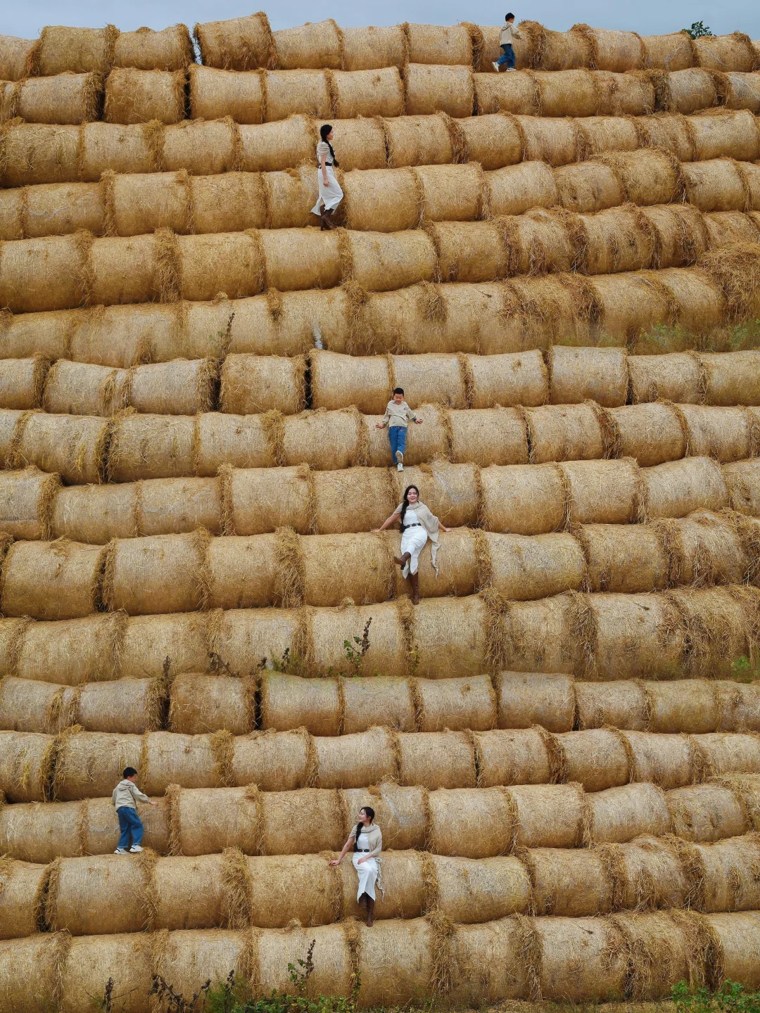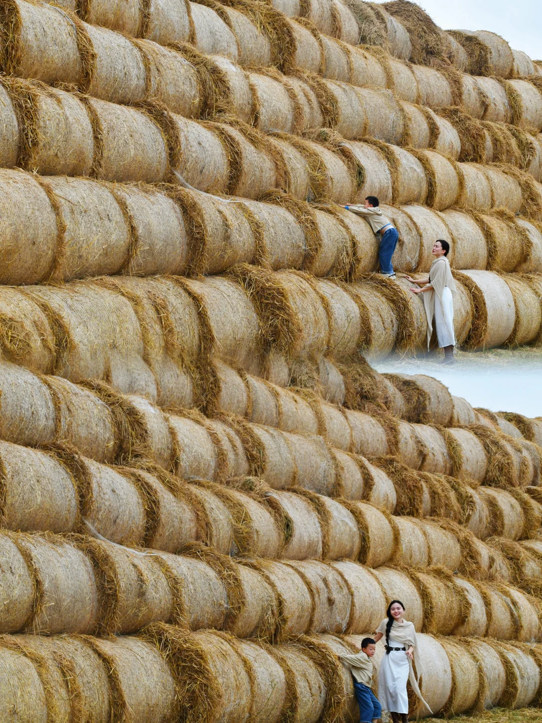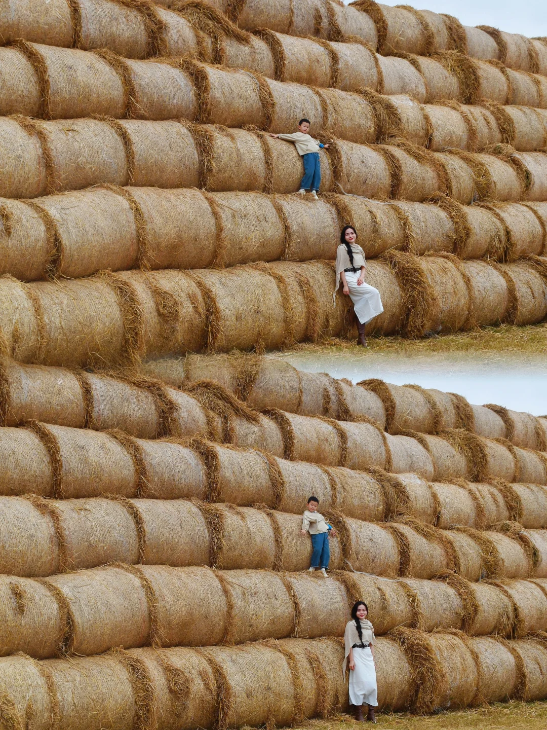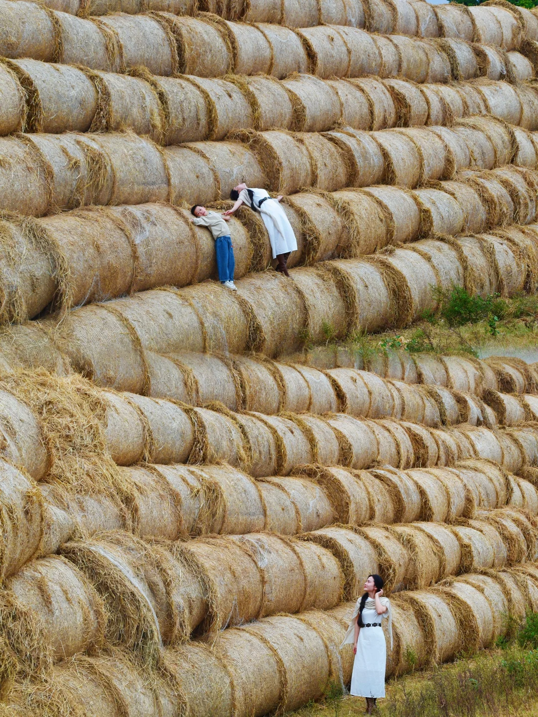 南昌一年一度的瑞士卷又来了! 路旁的草垛堆得一层一层超可爱,不用去呼伦贝尔,独属秋天的治愈风景就在路边,直接导航新建大塘坪乡杨董,开车不到1h,就可以到达,在河堤旁左侧,车可直接开下去,真的又好玩又好拍!