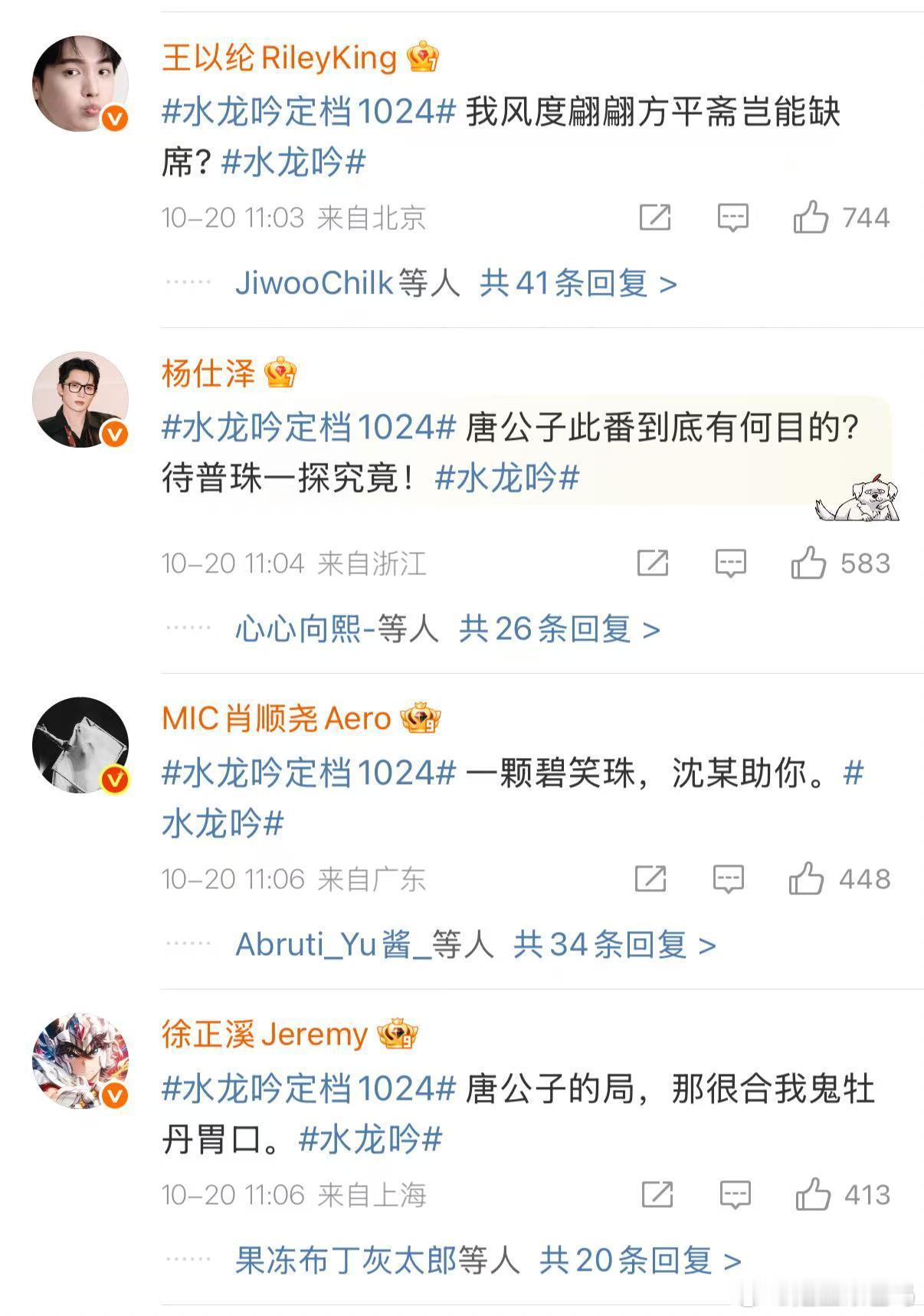 罗云熙评论区好多人啊罗云熙一呼百应的江湖排面评论区热闹到刷屏!全是期待唐俪辞和《水龙吟》的,这排面直接拉满~10月24日18点共赴江湖!