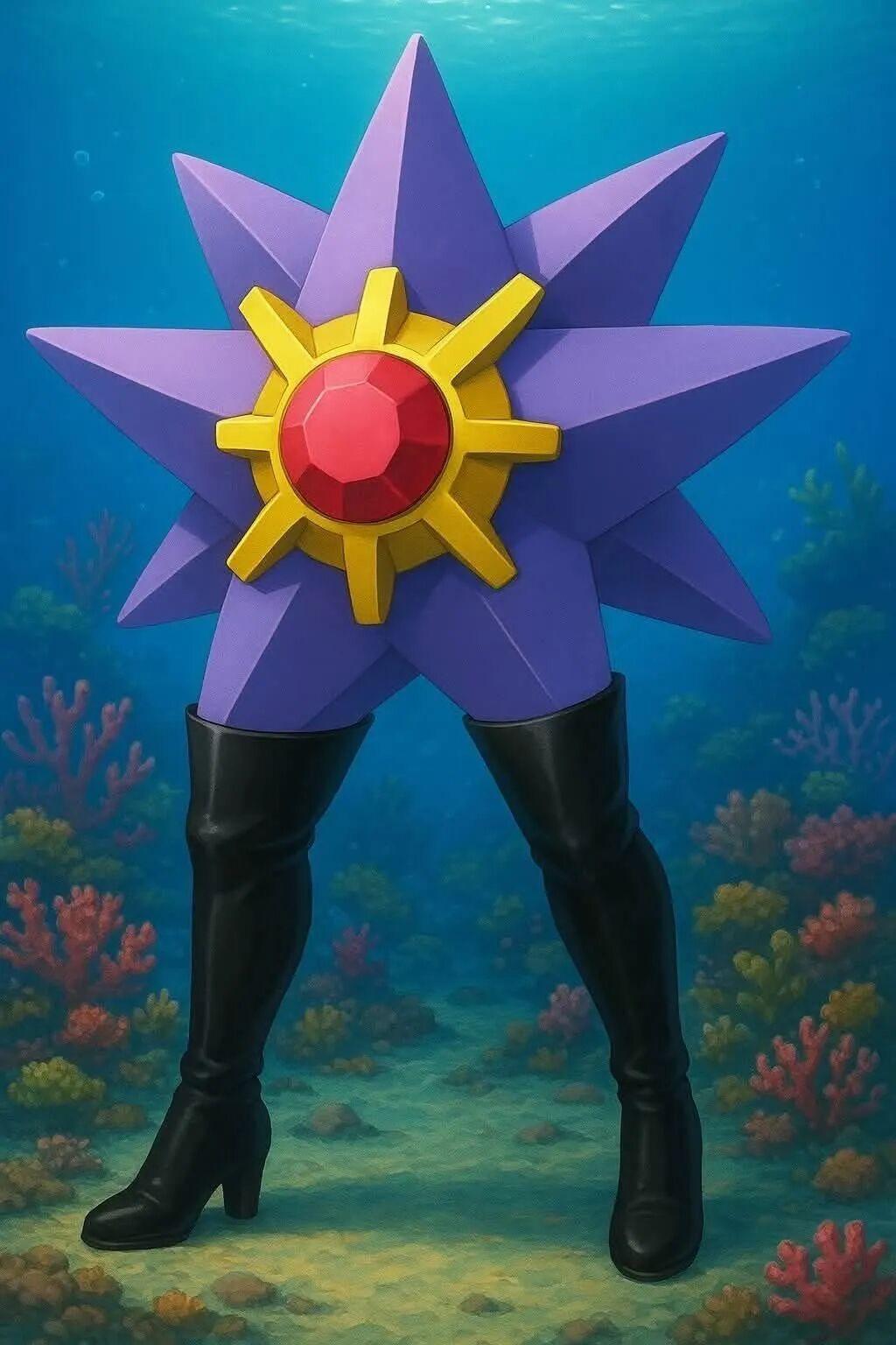 宝石海星(日文︰スターミー,英文︰Starmie)是水属性/超能力属性的宝可梦,近期在互联网上重新走红。 此次热度聚焦于《宝可梦传说Z - A》中它所呈现的Mega进化形态。Mega进化后的宝石海星,竟长出了两条细长且拟人化的下肢,其行走姿态怪异至极,被网友们戏谑地形容为“奇行种”“伪人式翘臀步态”。 对于这一设计,玩家们看法两极分化。多数玩家觉得该设计“恐怖”又“抽象”,质疑其严重破坏了宝可梦应有的生物感;而少数玩家则认可其荒诞特质所带来的传播力,他们或是调侃“不快乐就去看Mega宝石海星”,或是认为这种扭曲的造型很适合充当BOSS,能营造出强大的压迫感。 它也因此走红于网上。 正是这种充满争议的设计,让宝石海星在网络上迅速走红。虽说这一设计饱受争议,但不可否认的是,它确实收获了极高的热度。 宝石海星还成为了许多网友二创的主角,成为了新一代的互联网神话!